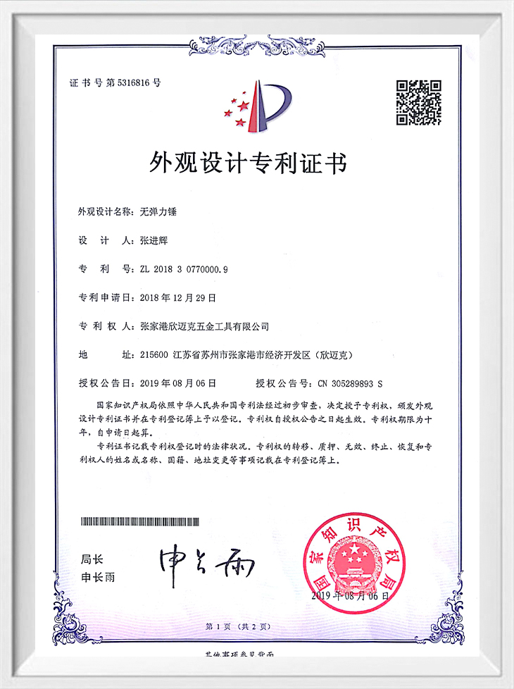 Certifikát patentu vzhľadu