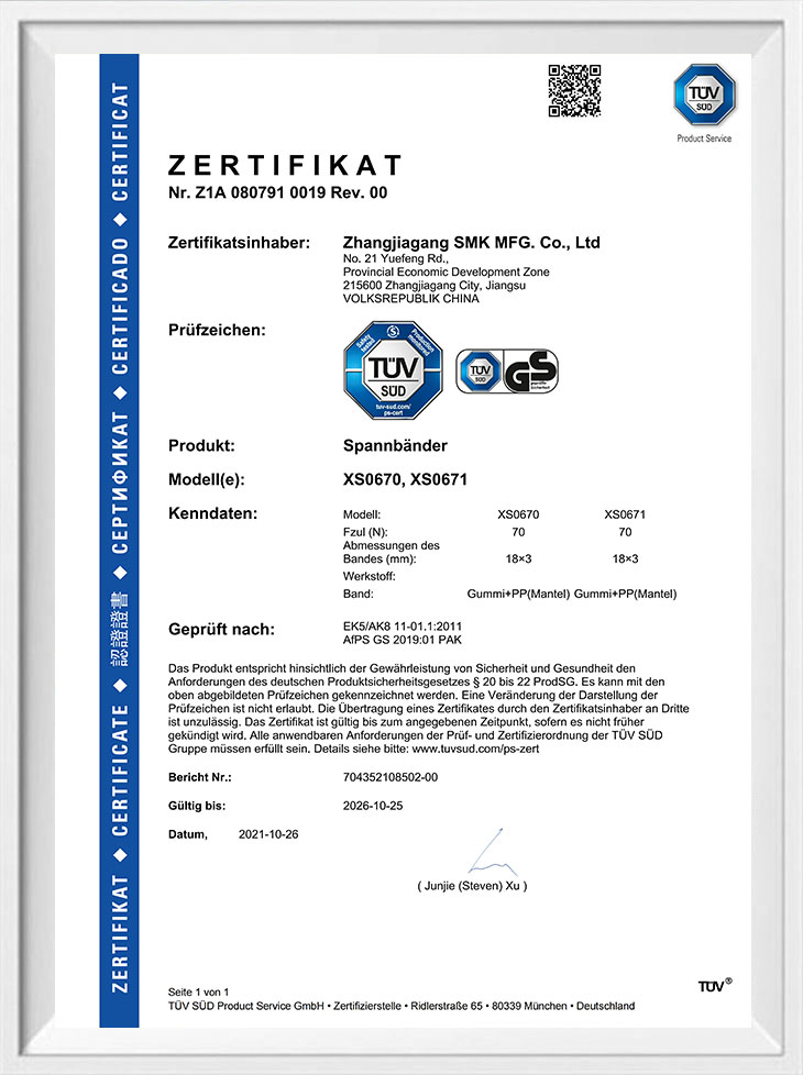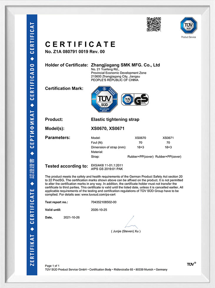 Uväzovacia a bungee šnúra s certifikáciou TUV GS