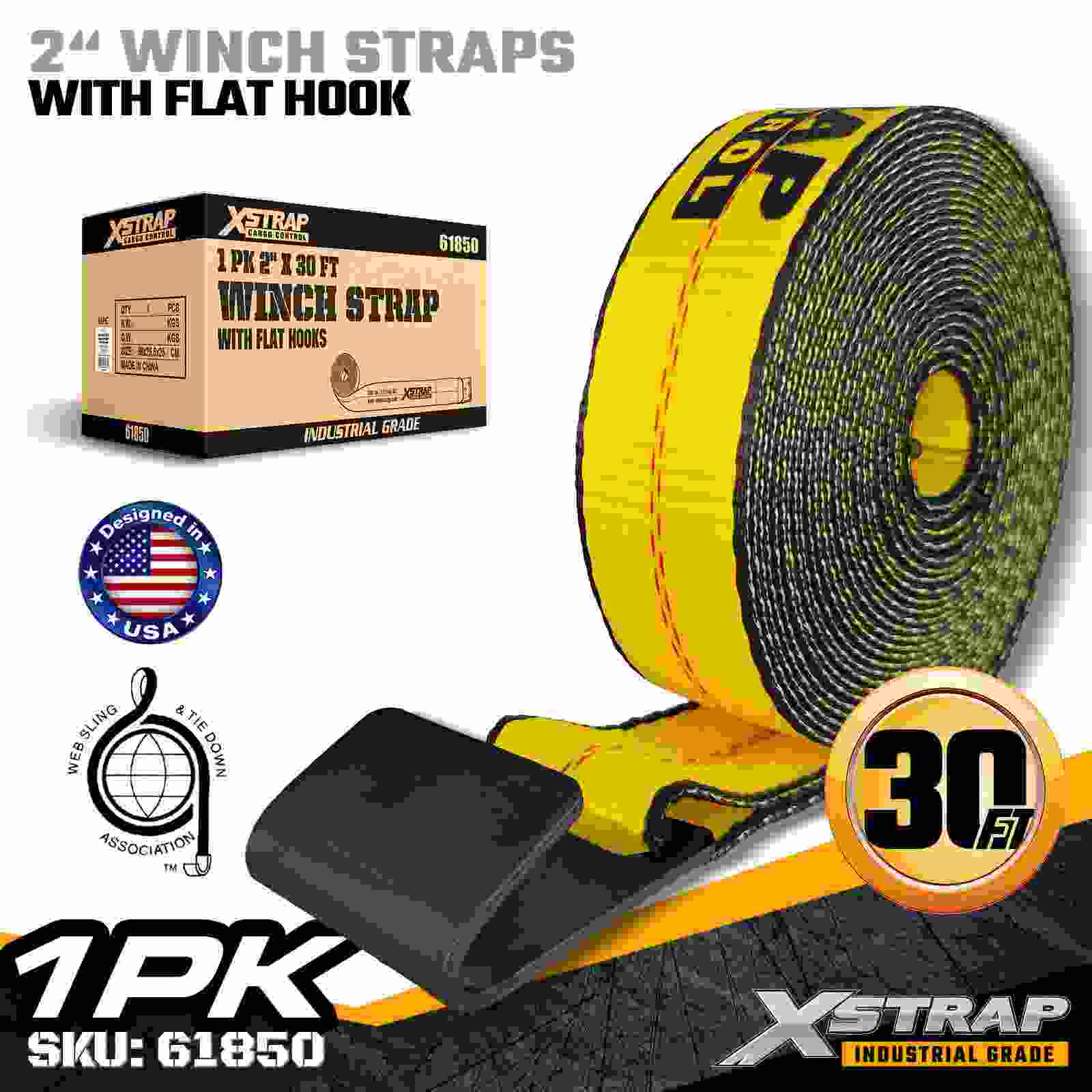 Štandardný navijakový popruh 2" × 30 stôp s plochým hákom