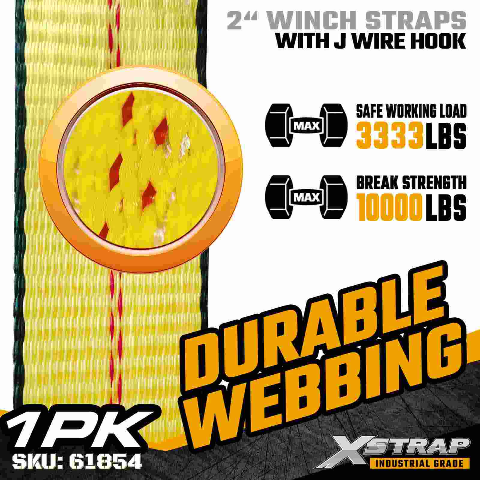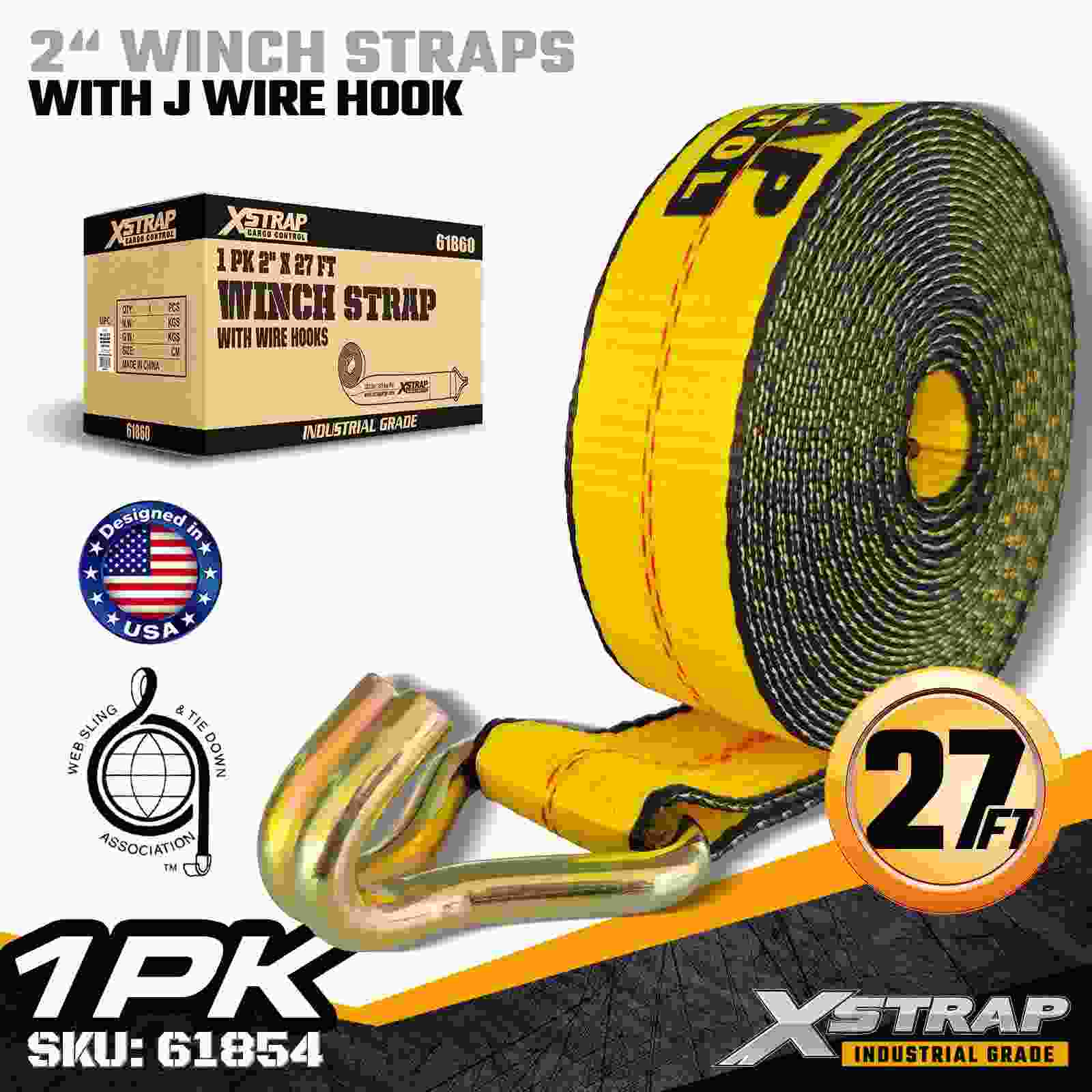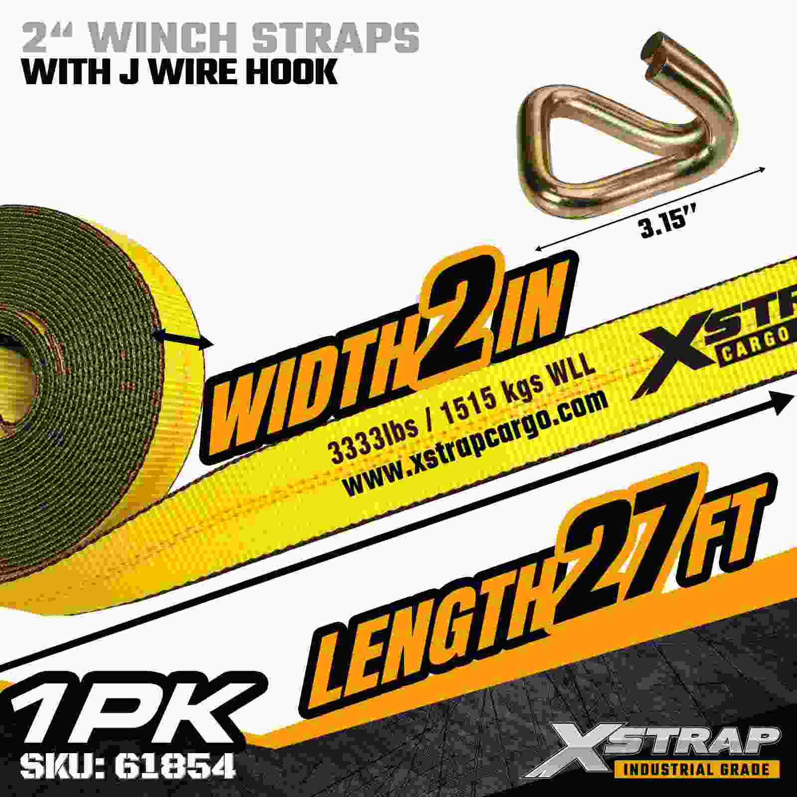 Xstrap 61854 2" × 27 stôp štandardný popruh na navijak je odolné a spoľahlivé riešenie zabezpečenia nákladu určené pre valníkové prívesy a profesionálnu prepravu. Tento 2-palcový navijakový popruh s pevným drôteným hákom a vysokopevnostným polyesterovým popruhom poskytuje limit pracovného zaťaženia 3 333 libier a 10 000 libier je ideálny na zaistenie bezpečnosti. rezivo, rúry, stroje a všeobecný náklad počas každodennej prepravy.