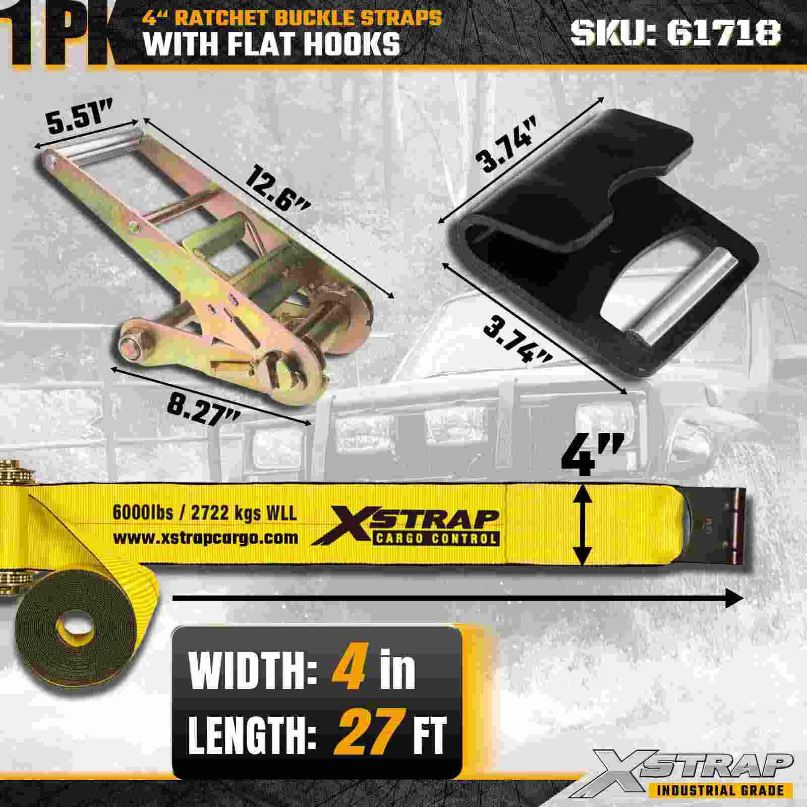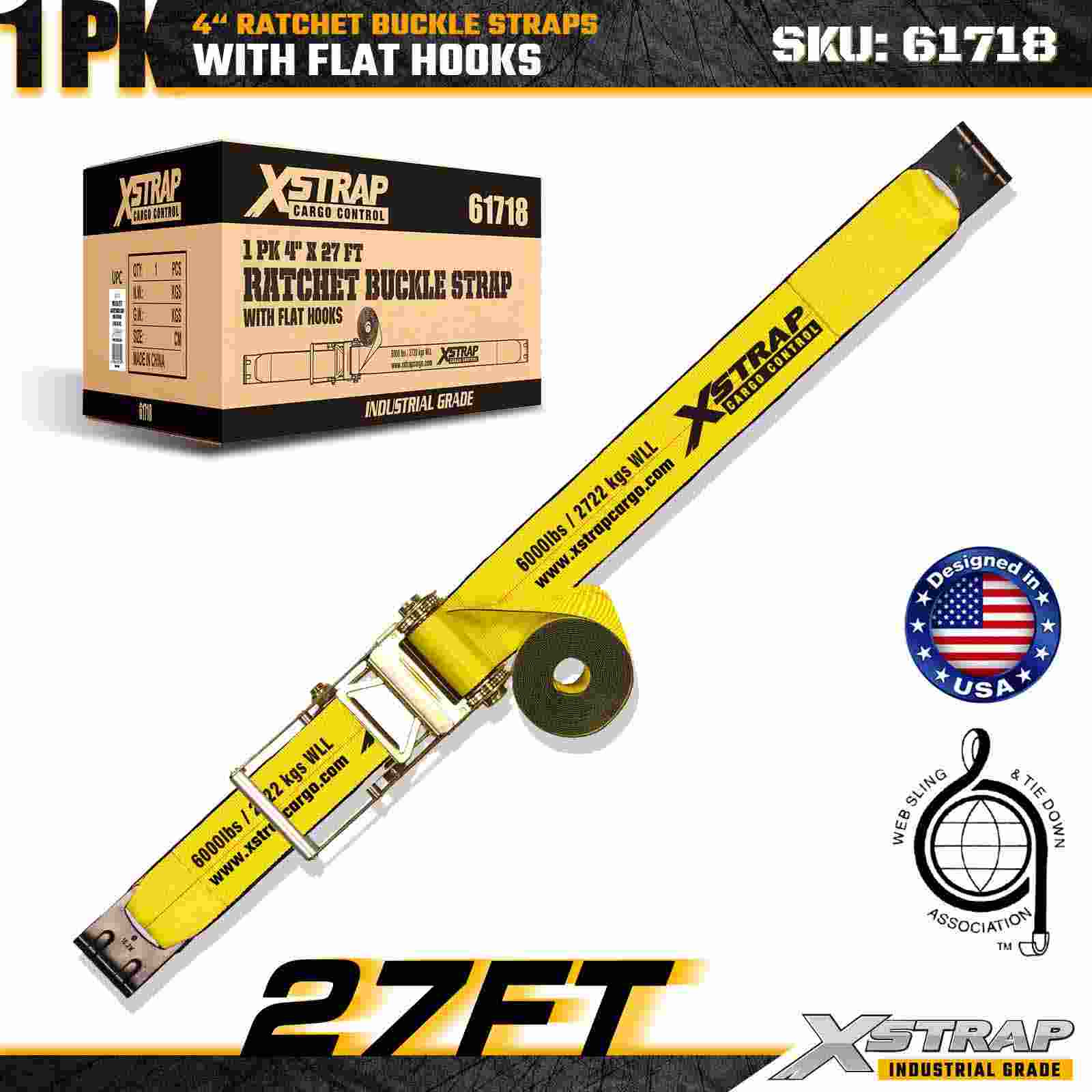 Xstrap 61718 4" × 27 stôp remienok s račňou s prackou (1 balenie) je skonštruovaný pre extrémne náročné zaistenie nákladu, obsahuje zosilnené ploché háky a odolný račňový mechanizmus. S limitom pracovného zaťaženia 6 000 lb a pevnosťou v pretrhnutí 18 000 libier pre profesionálne prepravné stroje a priemyselnými konštrukčnými materiálmi. logistika, kde je nevyhnutná maximálna sila a spoľahlivosť.