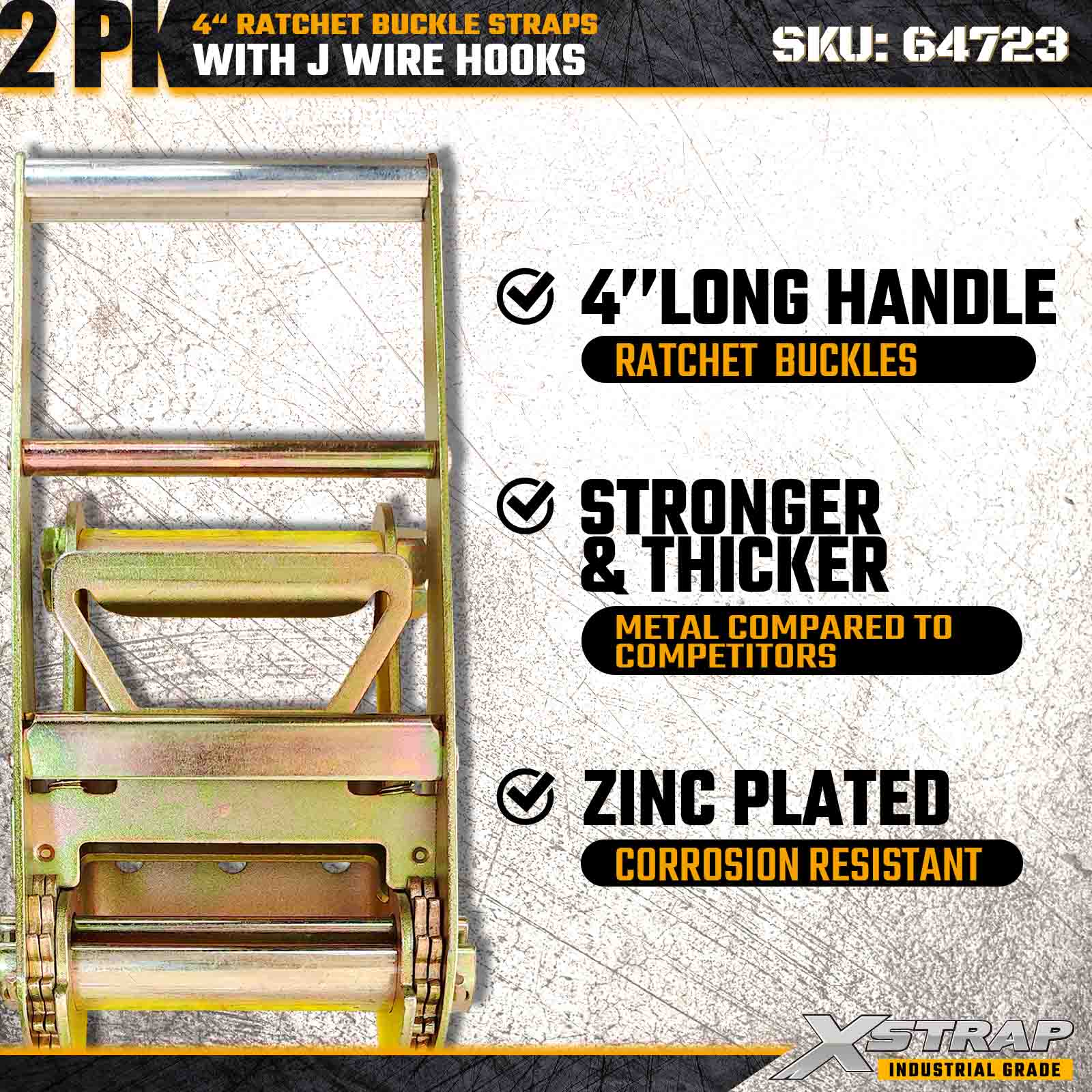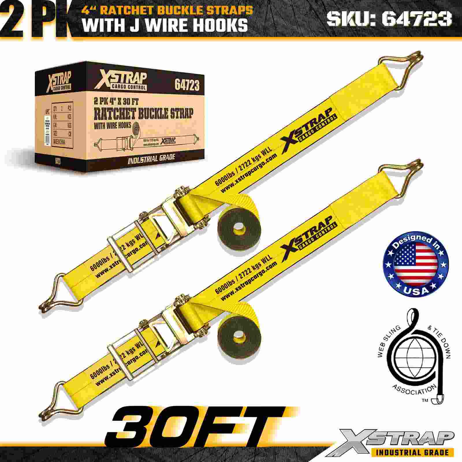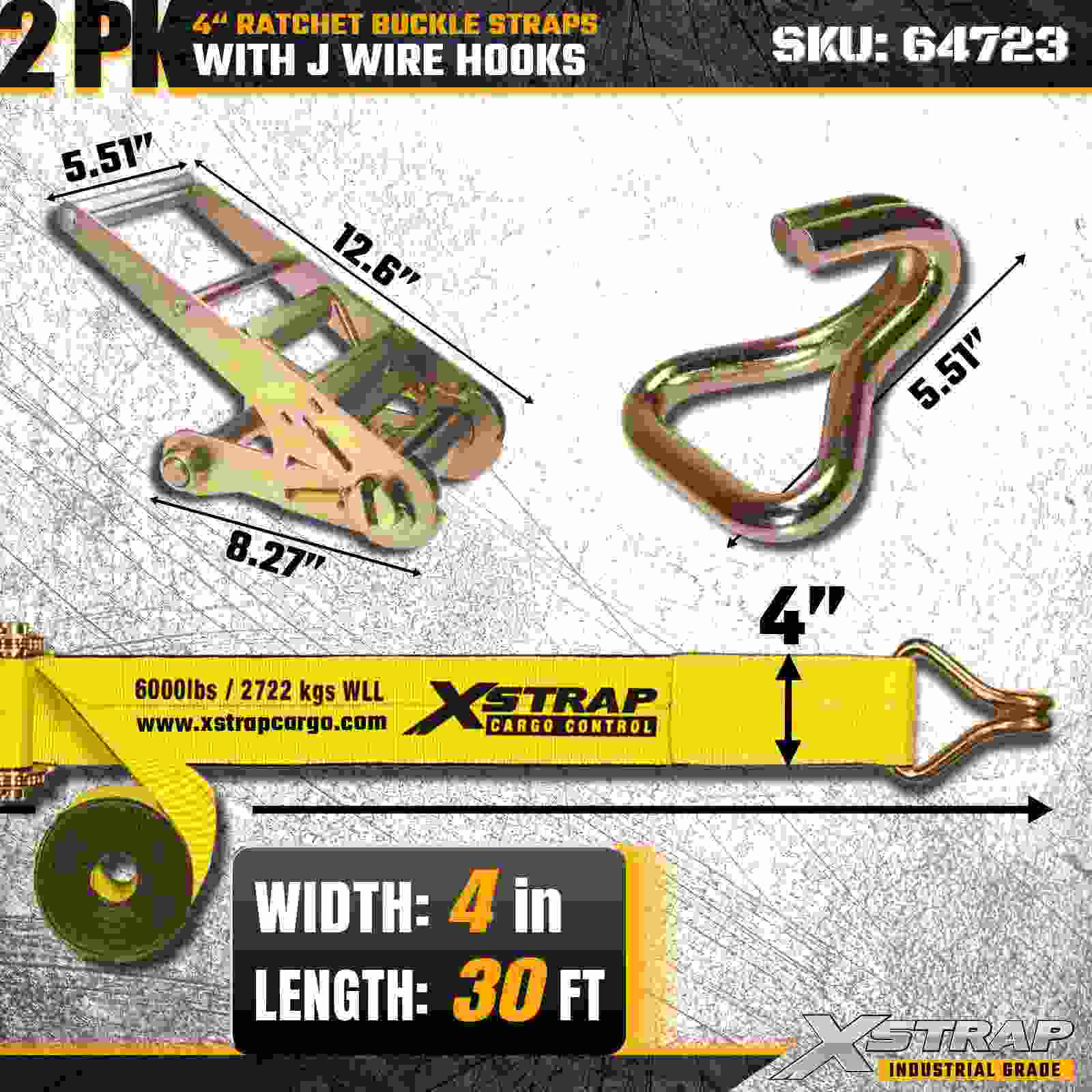 Xstrap 64723 4" × 30 stôp remienky s račňou s prackou (2-balenie) sú navrhnuté pre zaistenie nákladu v ťažkých podmienkach, obsahujú zosilnené drôtené háky a odolný račňový mechanizmus. S limitom pracovného zaťaženia 6 000 libier a 18 000 libier sú ideálne pevné oceľové popruhy na prepravu plochého nákladu. a aplikácie priemyselného nákladu.