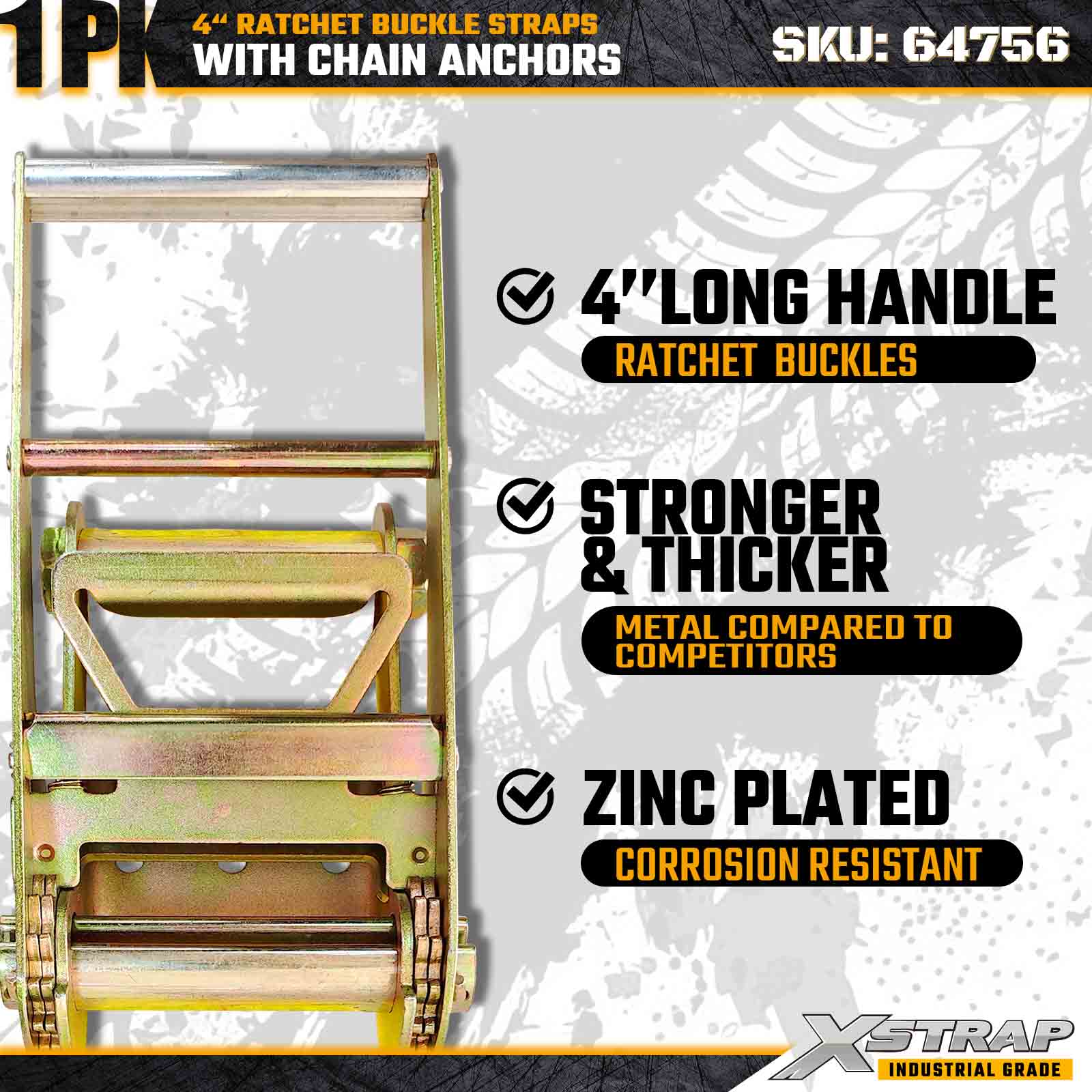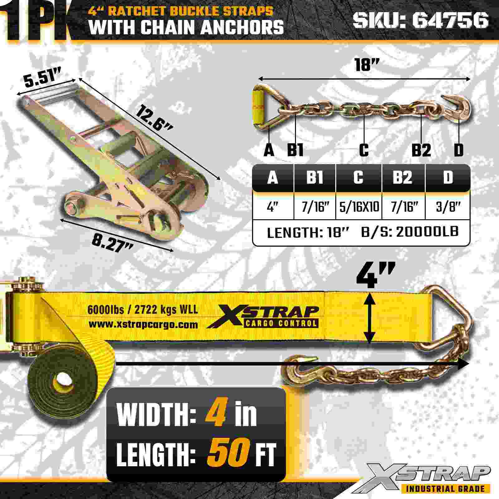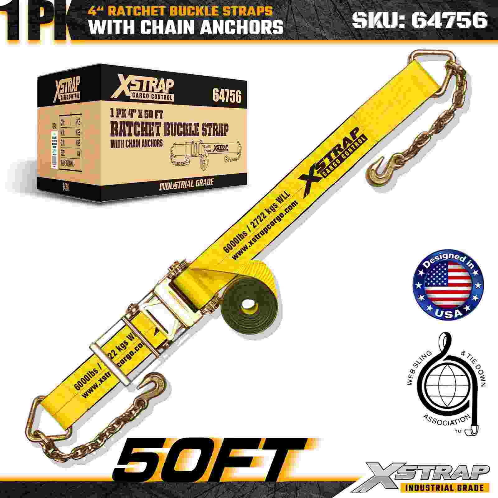 Xstrap 64756 4" × 50 stôp remienok s račňou a kotvami reťaze Sila prelomu 18 000 libier (1 balenie)