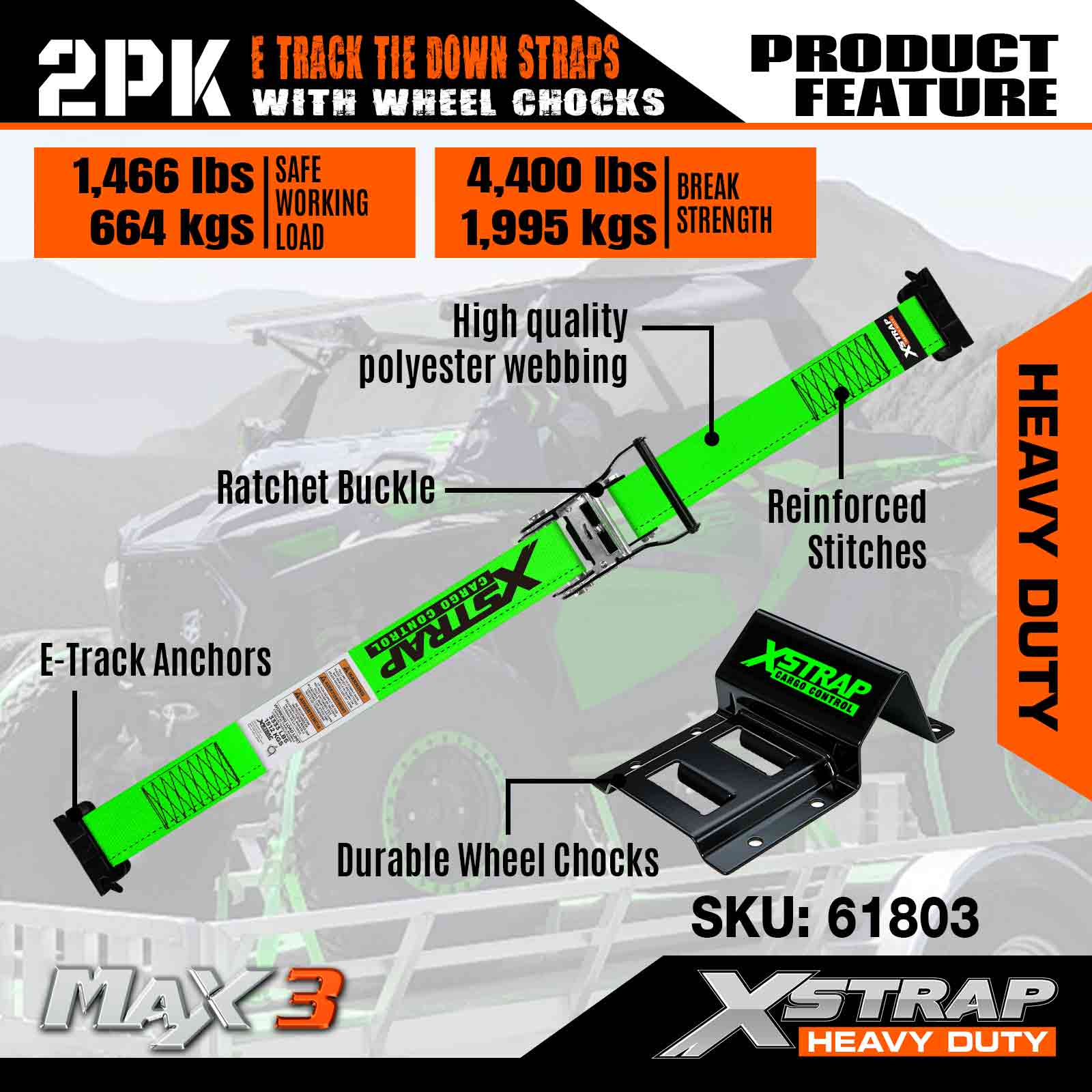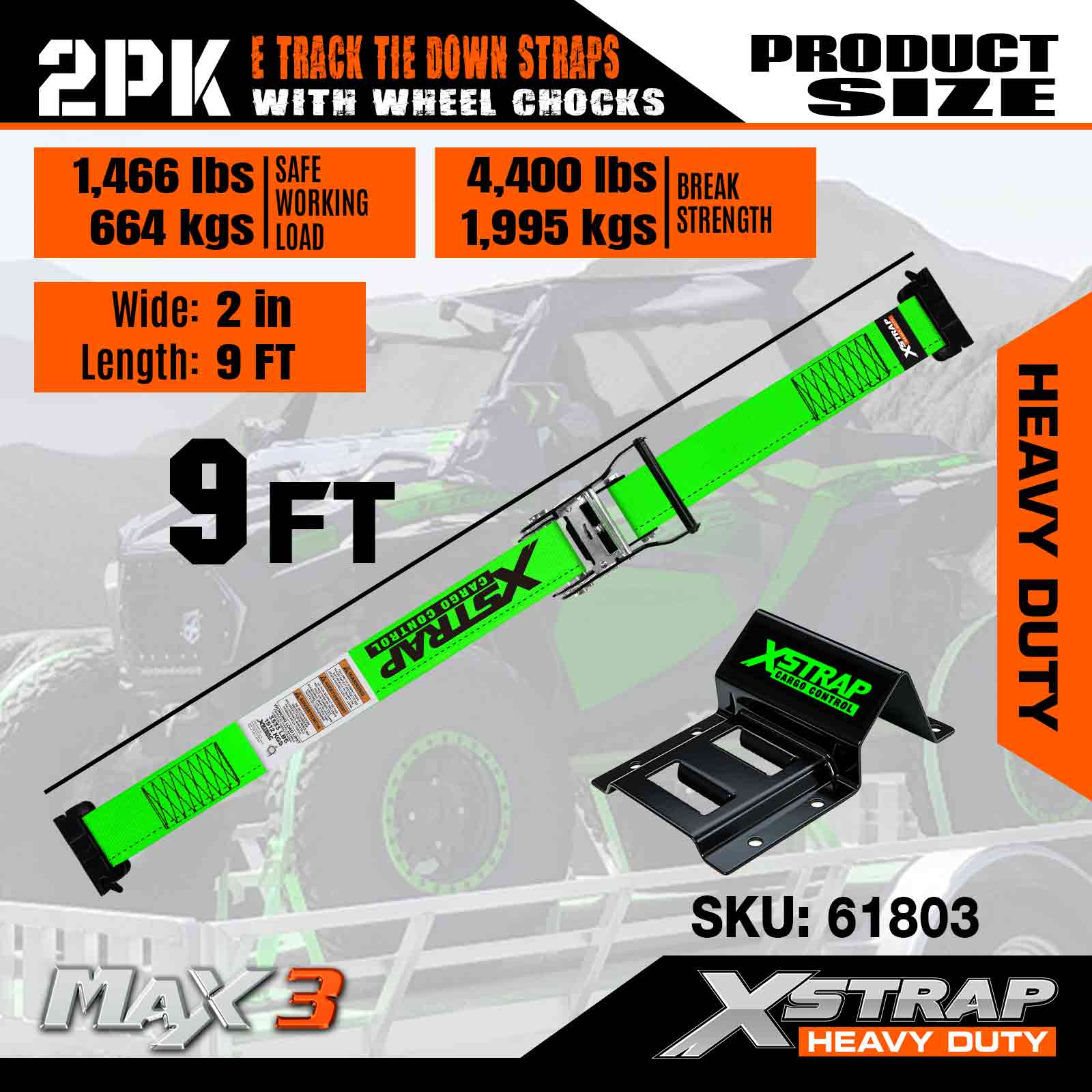Súprava na uchytenie kolies Xstrap E-Track, vysokovýkonné popruhy 2 palce * 9 stôp pre príves UTV ATV, upínacie prvky s račňou a popruhmi na pneumatiky (2 balenia)