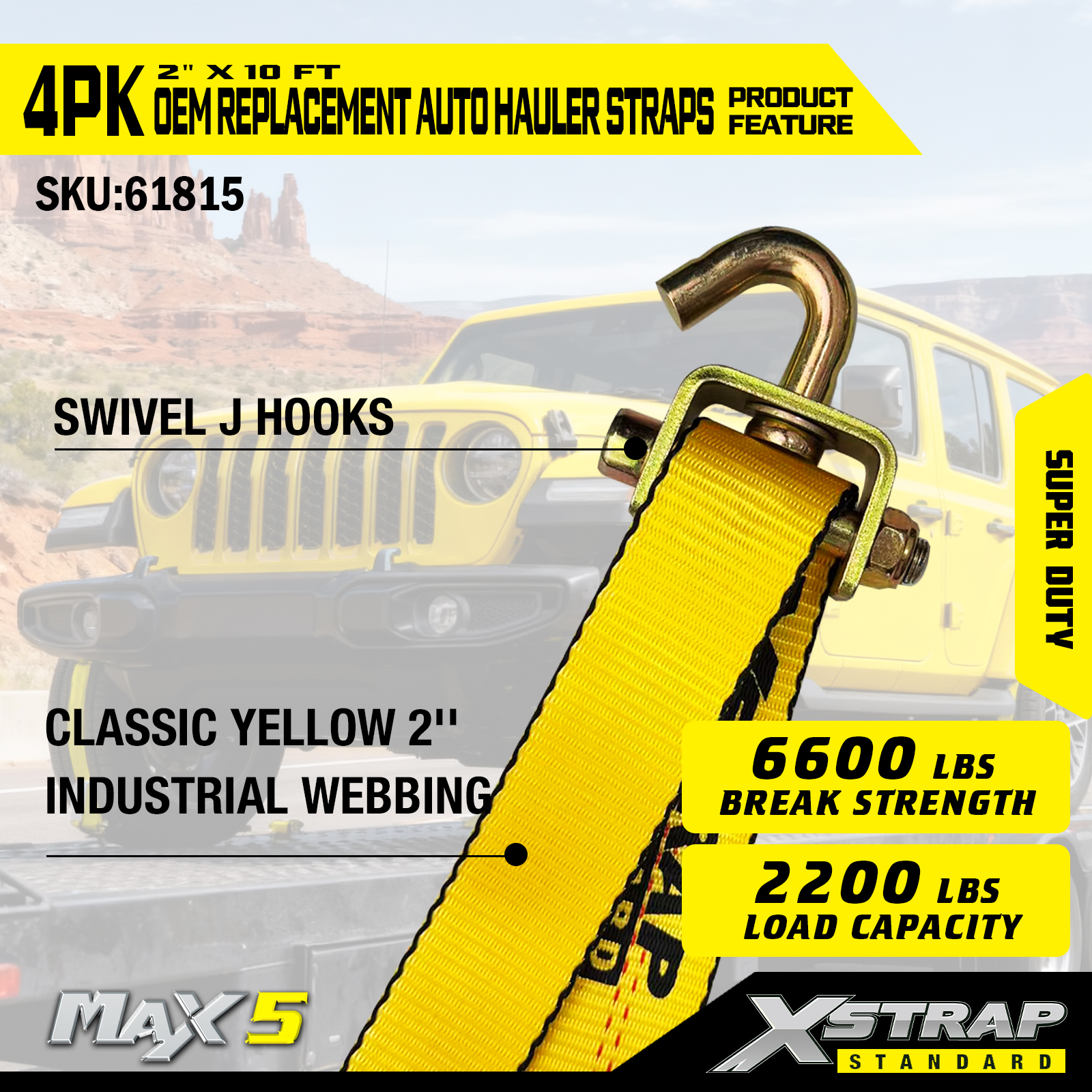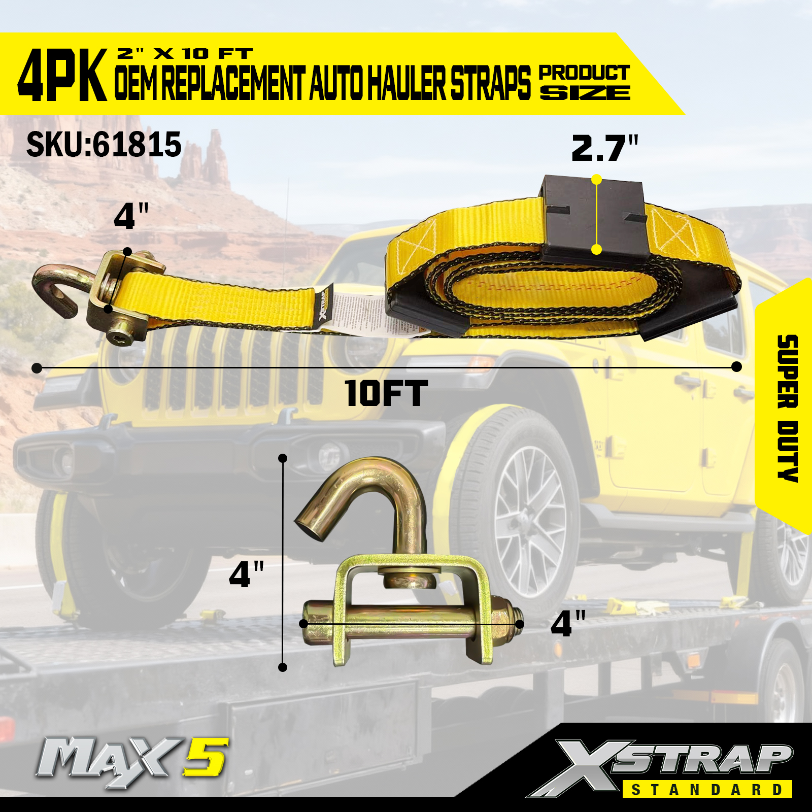 - Zaťaženie Super Duty: Dimenzované na bezpečné pracovné zaťaženie 2 200 LBS a medzu pevnosti 6 600 LBS, spĺňa požiadavky prepravy ťažkých vozidiel.