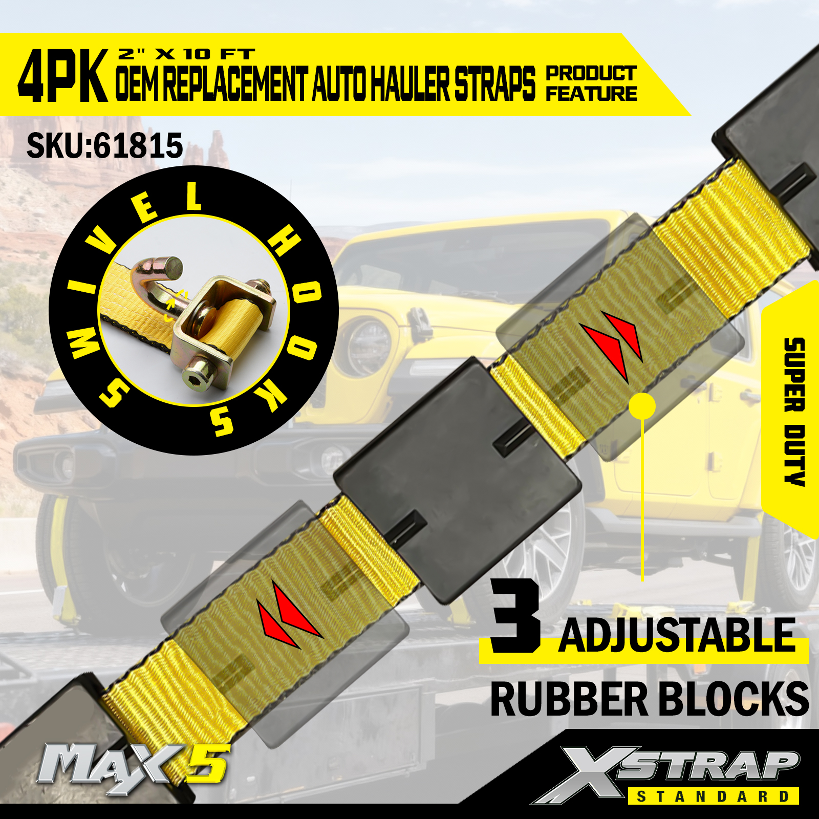 - Popruh priemyselnej kvality: 2” široký klasický žltý popruh je odolný proti prerezaniu, UV žiareniu a je vyrobený tak, aby odolal veľkému napätiu – spĺňa štandardy odolnosti OEM.