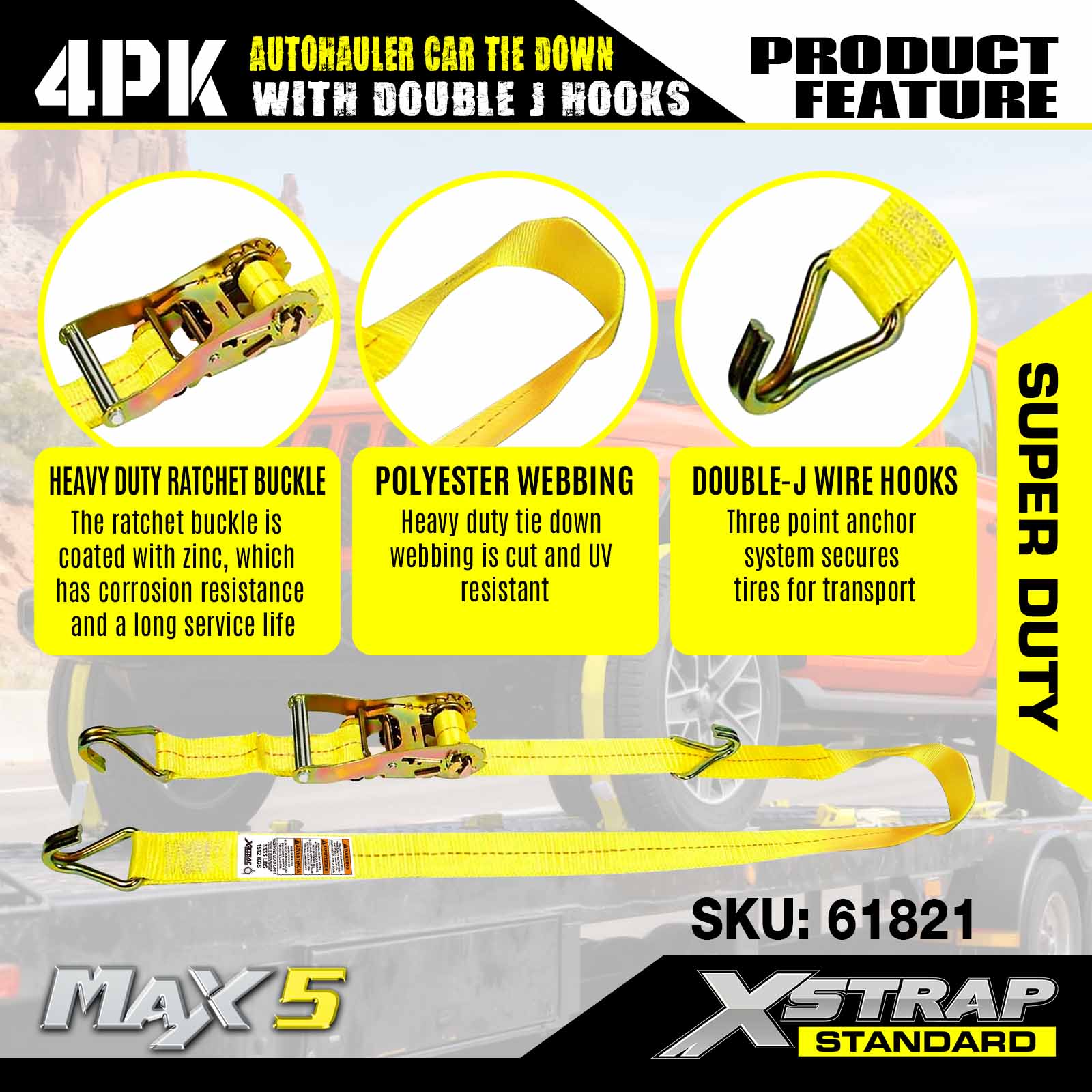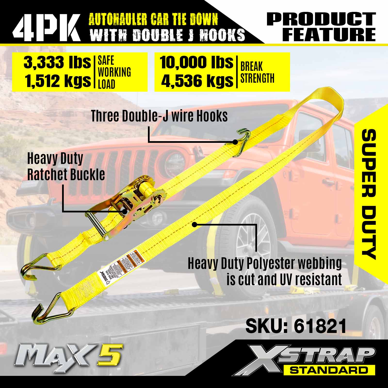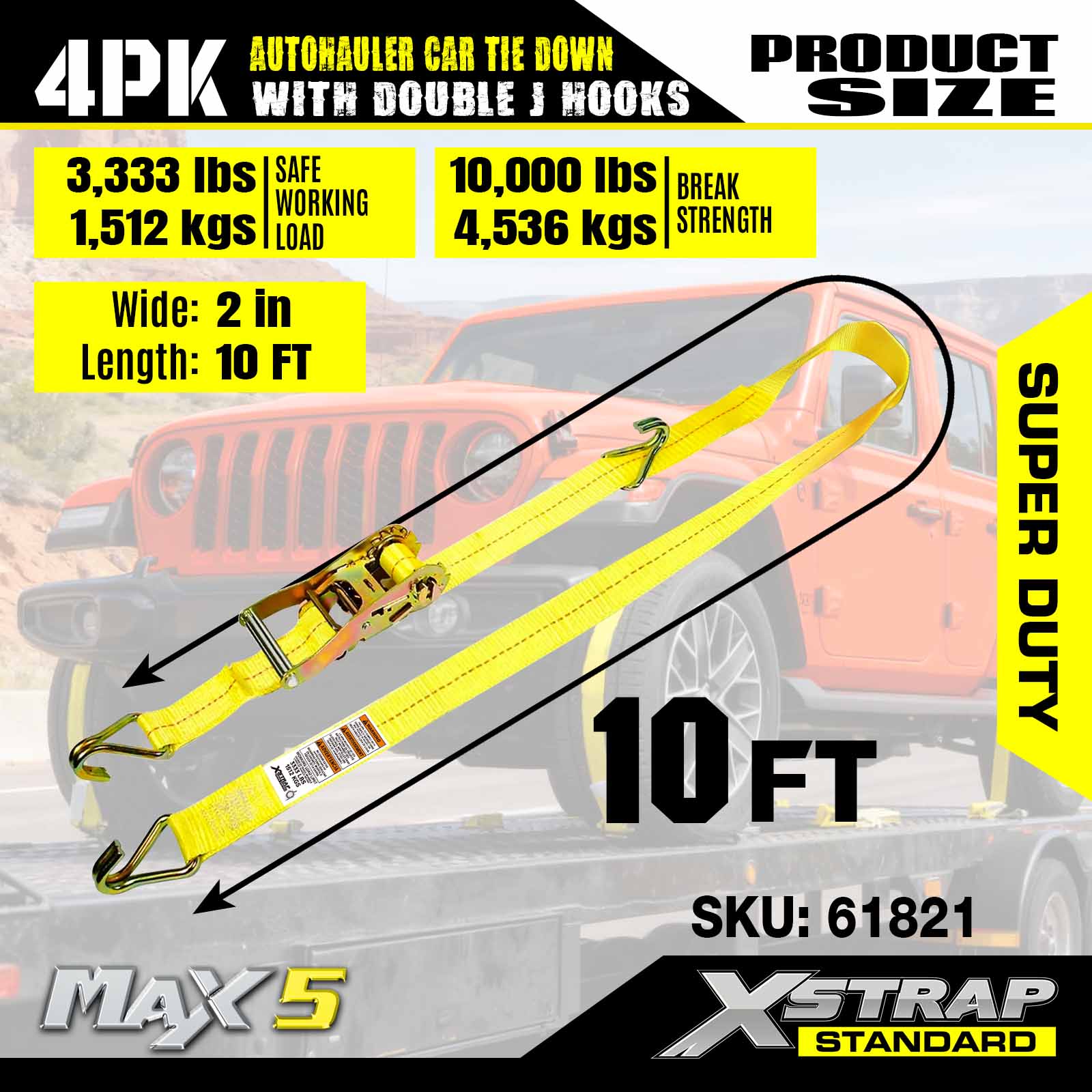 - Super Duty Performance: Dimenzovaný na bezpečné pracovné zaťaženie 3 333 LBS a medzu pevnosti 10 000 LBS, je skonštruovaný tak, aby zvládal ťažké vozidlá a náročné scenáre prepravy.