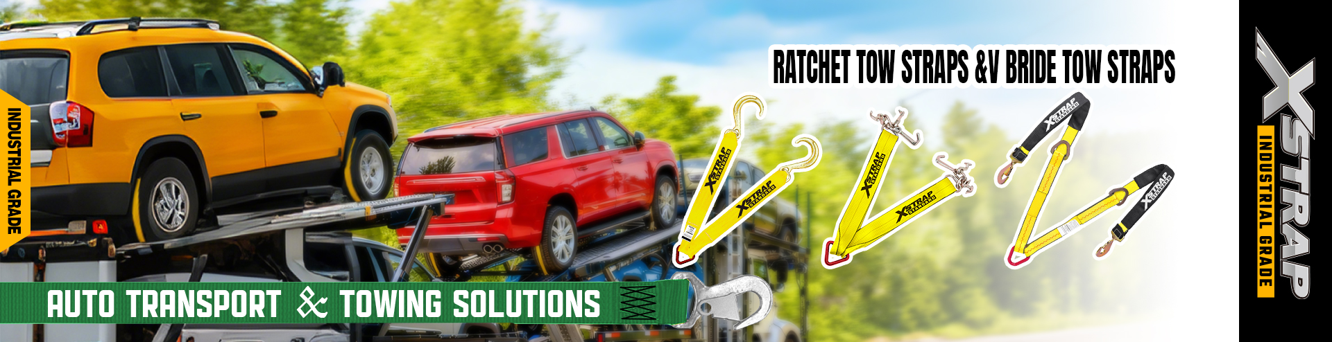Domov / Produkty / Riešenia automobilovej dopravy a odťahov / Ťažný popruh s račňou a ťažný popruh s V uzdou