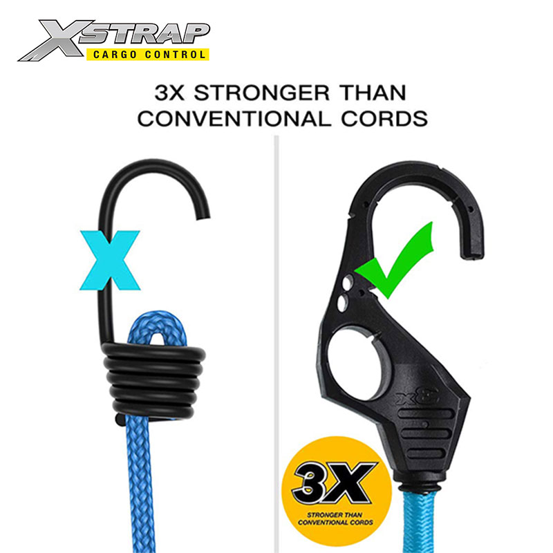 Medzitým sú háčiky 3-krát pevnejšie ako háčiky z obyčajných bungee šnúrok. Preto nie je ľahké ho zlomiť. Je bezpečnejšia ako iné bungee šnúry.