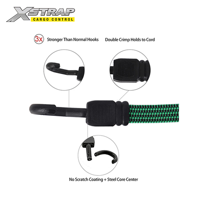 - Háčiky plochých bungee šnúrok sú 3x pevnejšie ako obyčajný háčik. Sú to vysokovýkonné šnúry na batožinu, plachty, stany, lode, bicykle a nákladné autá. Bungee šnúry poskytujú spoľahlivý a odolný výkon, kedykoľvek ich používate.