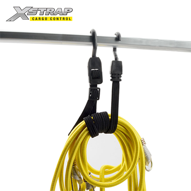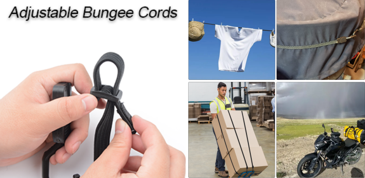 Nastaviteľné bungee šnúrky ponúkajú zvýšenú stabilitu a zníženú tendenciu kopať do predmetov. Sú všestranné a vhodné pre širokú škálu aplikácií, vrátane vybavenia, organizácie skladovania, viazania batožiny alebo plachiet, bezpečného vonkajšieho vybavenia, záhrady, garáže alebo cestovania.