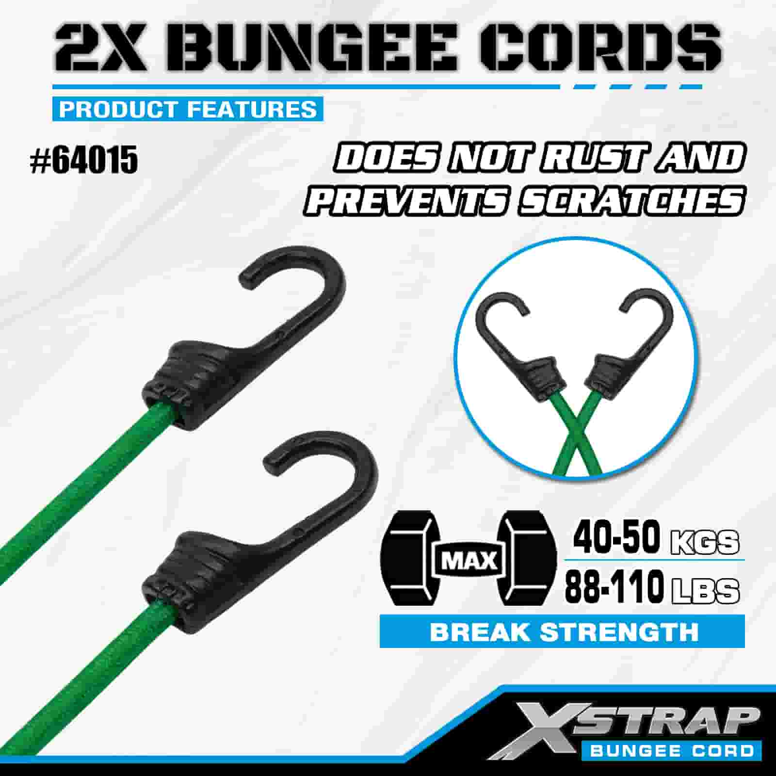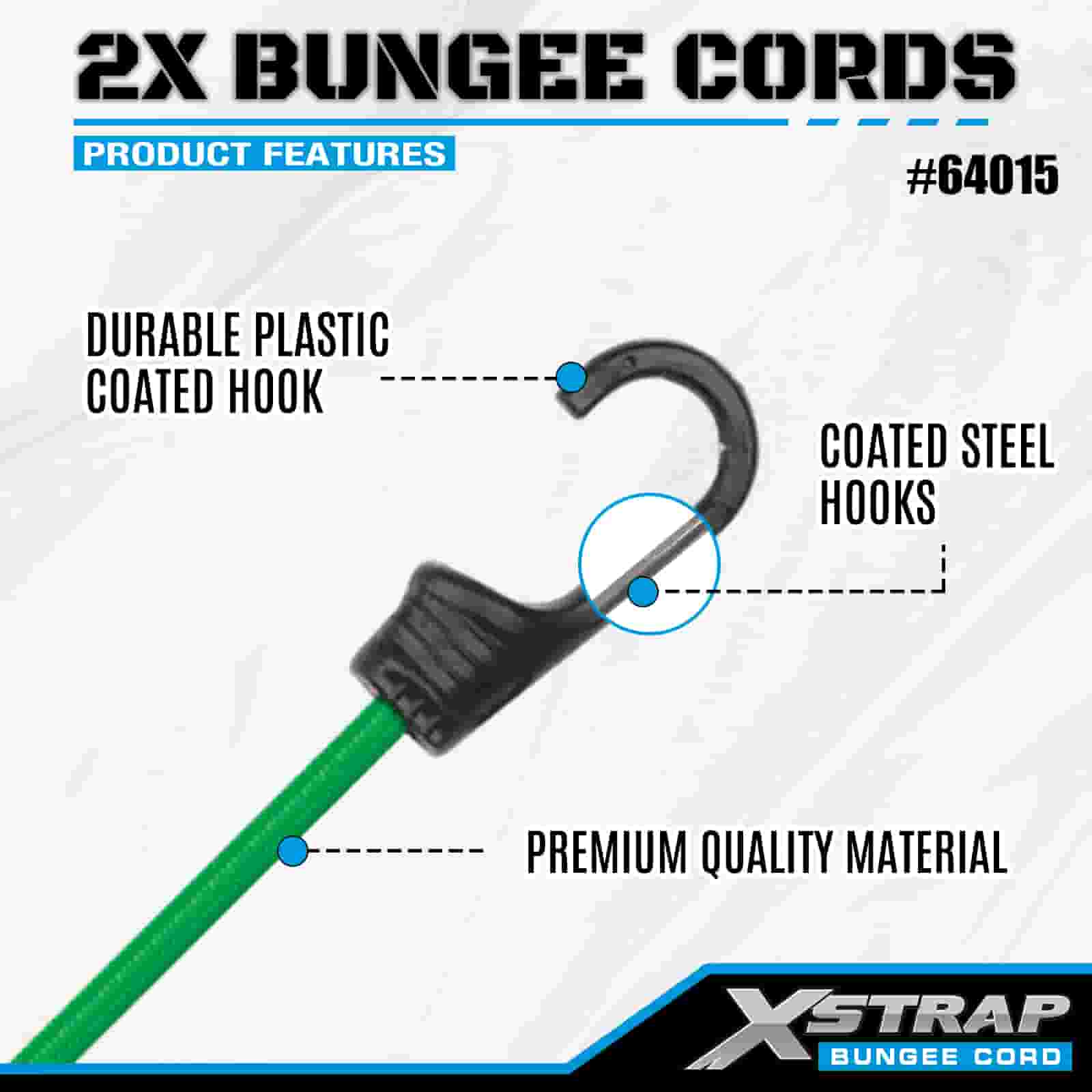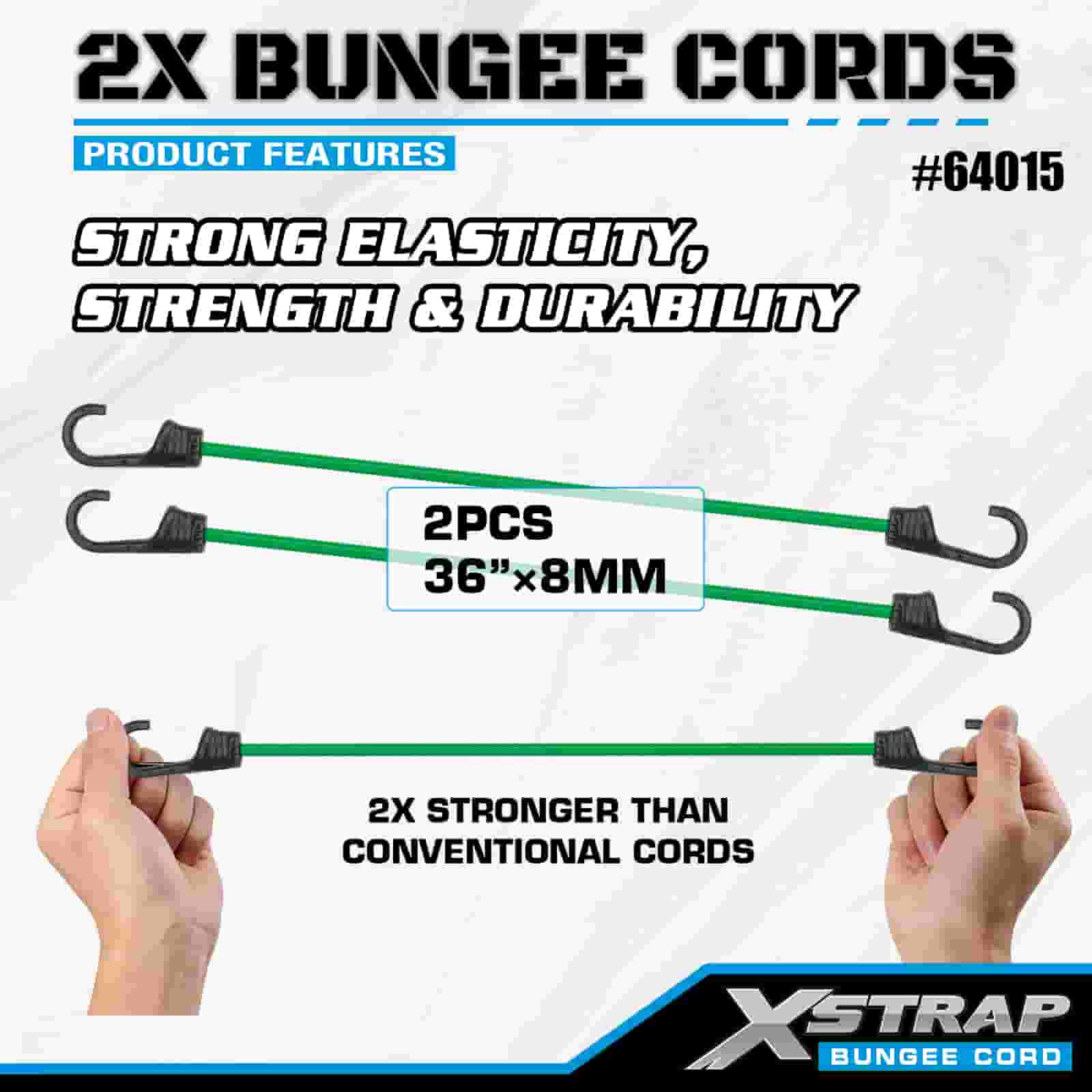 Xstrap 2PK 2X Bungee Cords 8 mm x 36”, 88-110 lbs pevnosť v pretrhnutí so silnými háčikmi pre kontrolu nákladu.