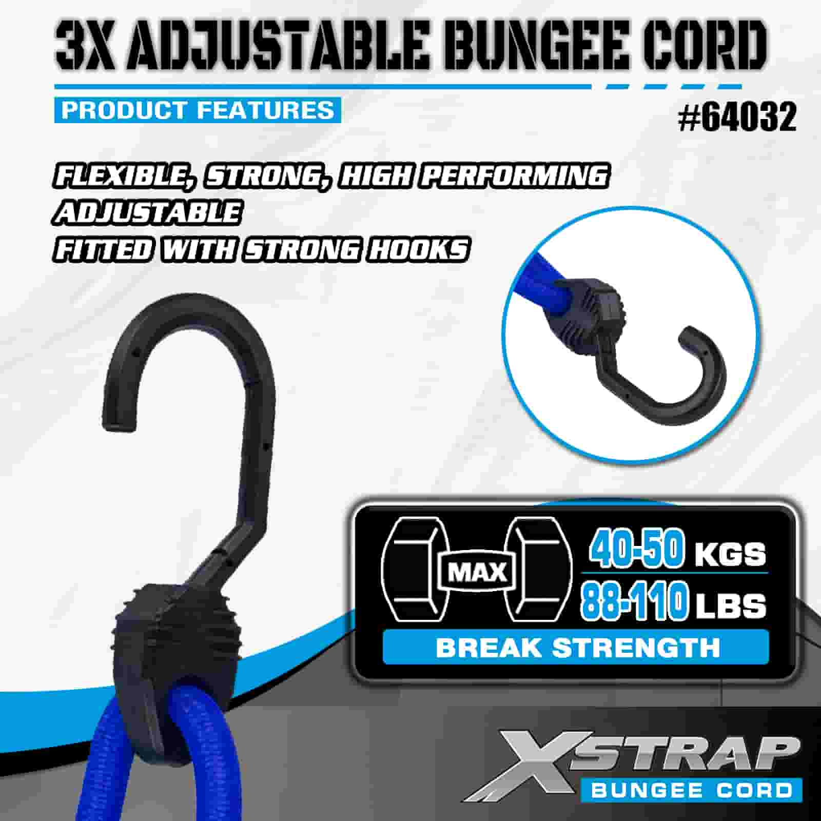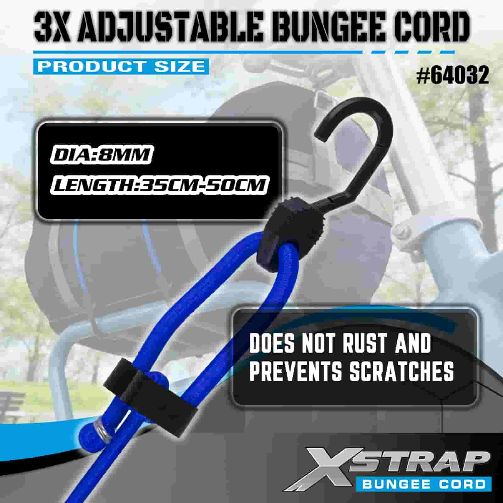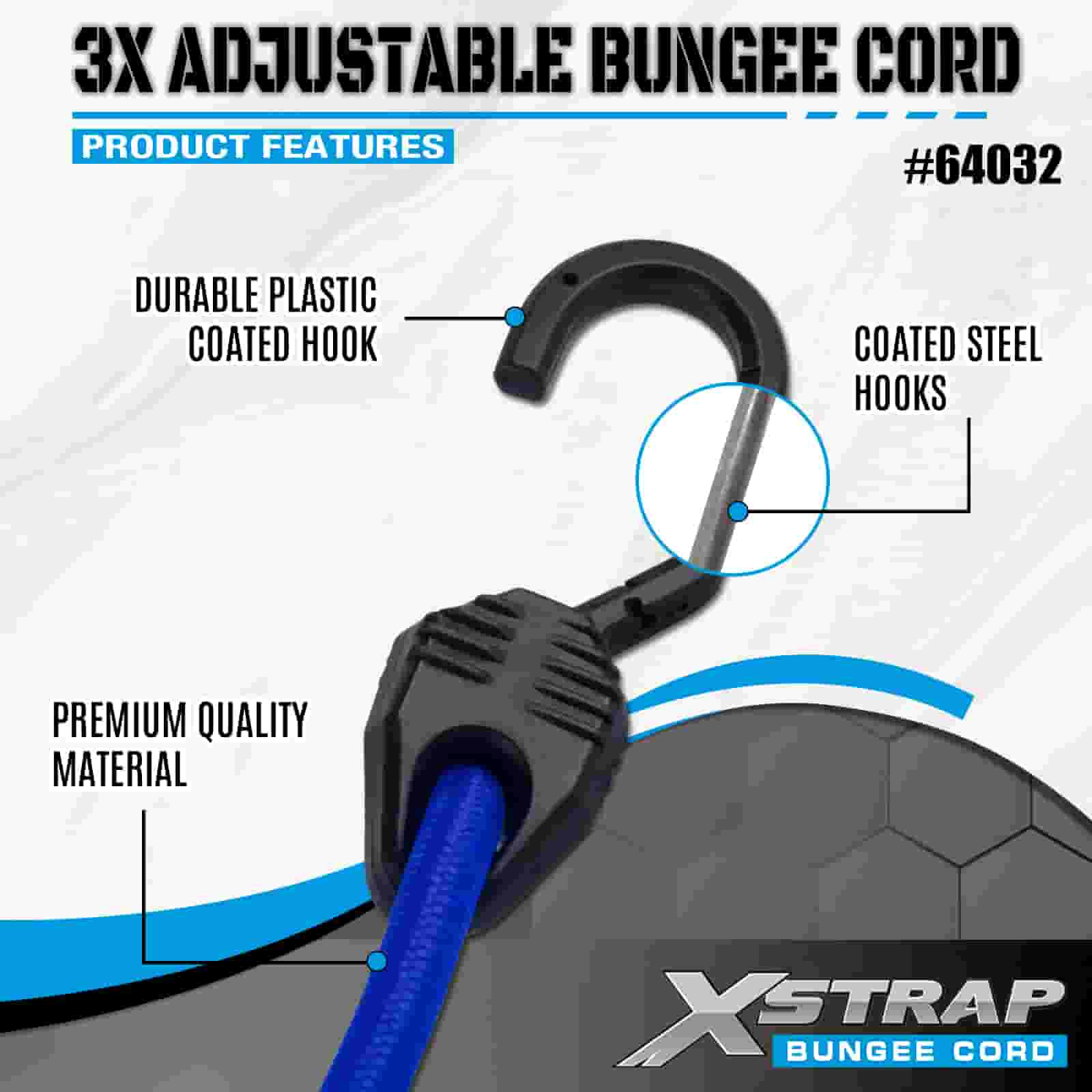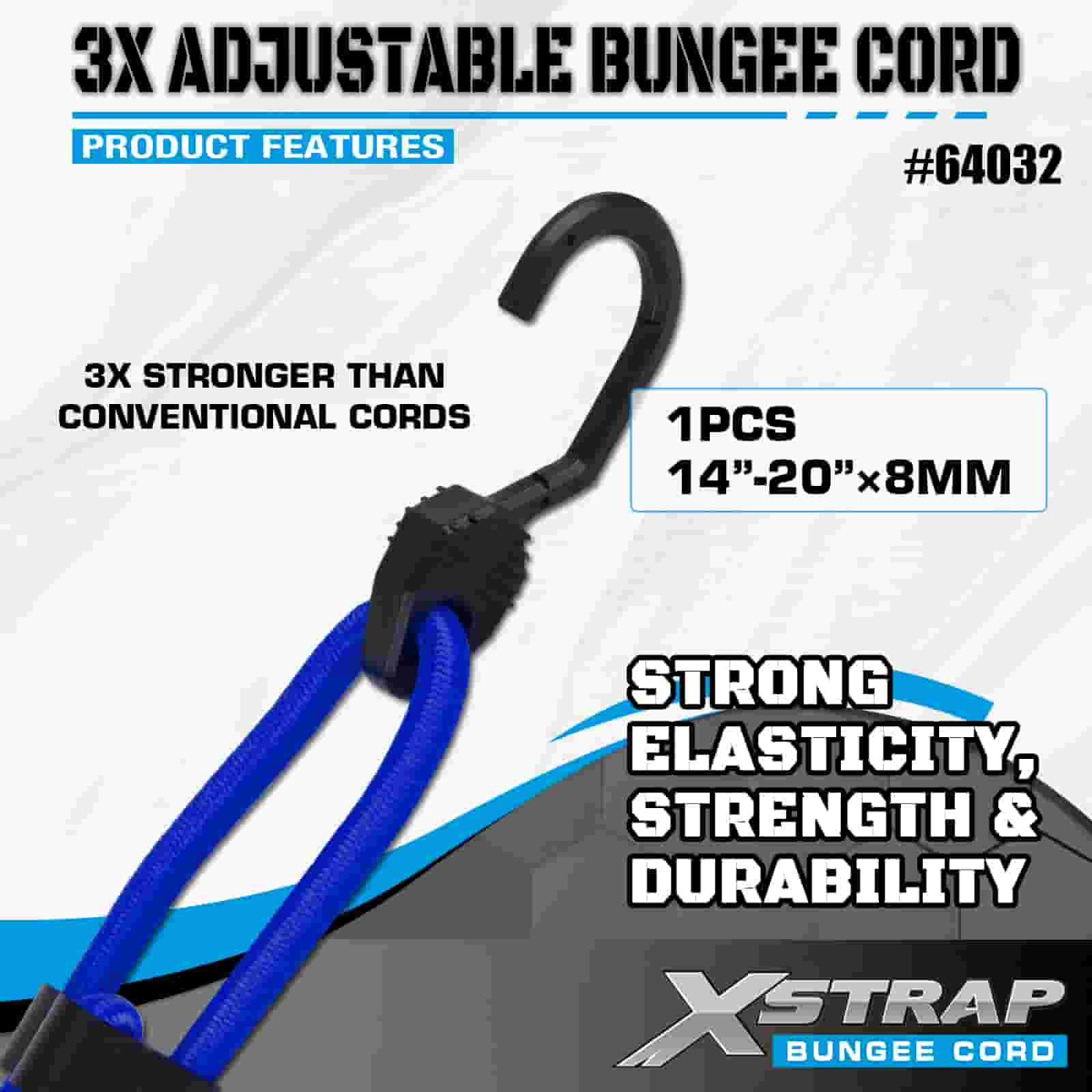 Xstrap 3X nastaviteľné bungee šnúry 8 mm x 14”-20”, 132-165 libier pevnosť v pretrhnutí so silnými háčikmi pre kontrolu nákladu .