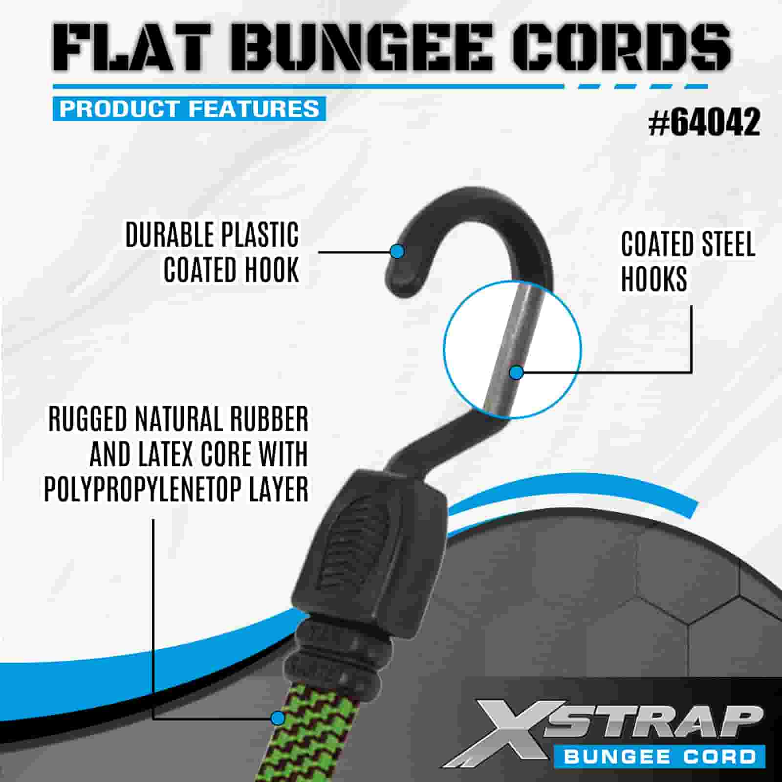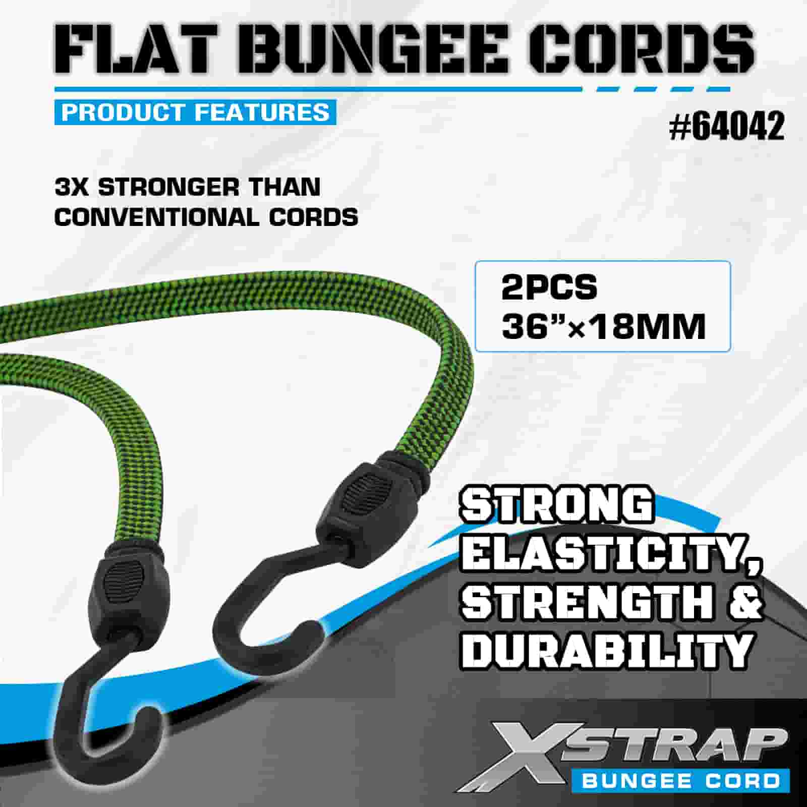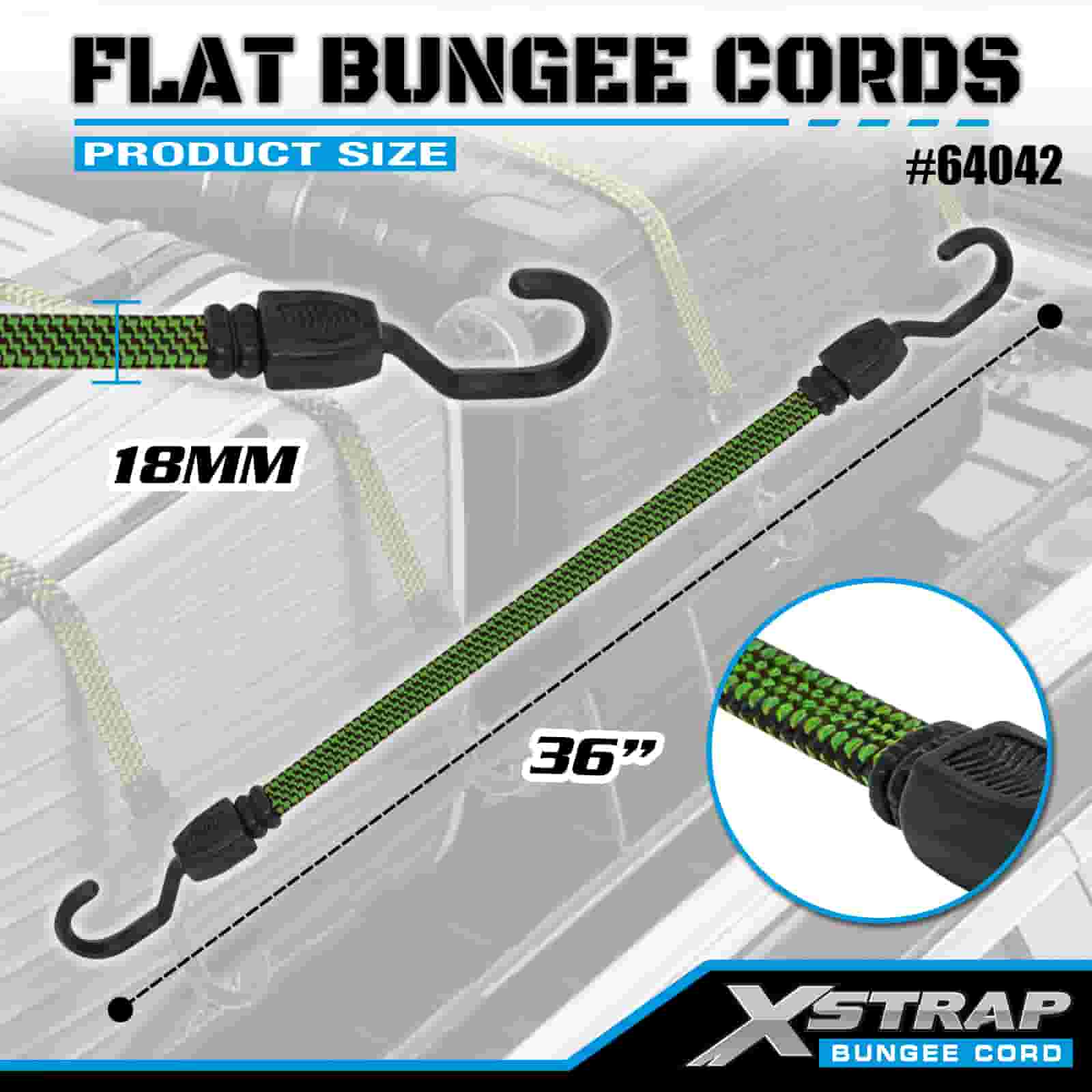 Xstrap 2PK Flat Bungee Cords 18 mm x 36”, 132-165 lbs pevnosť v pretrhnutí so silnými háčikmi pre kontrolu nákladu .