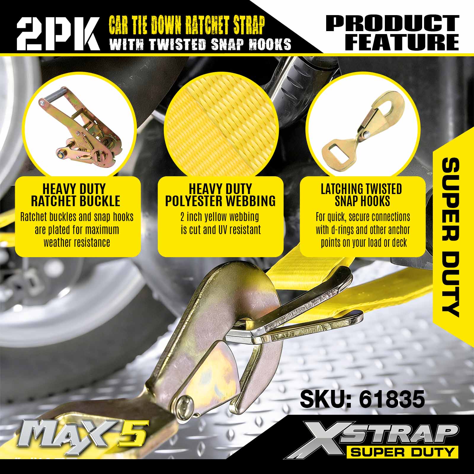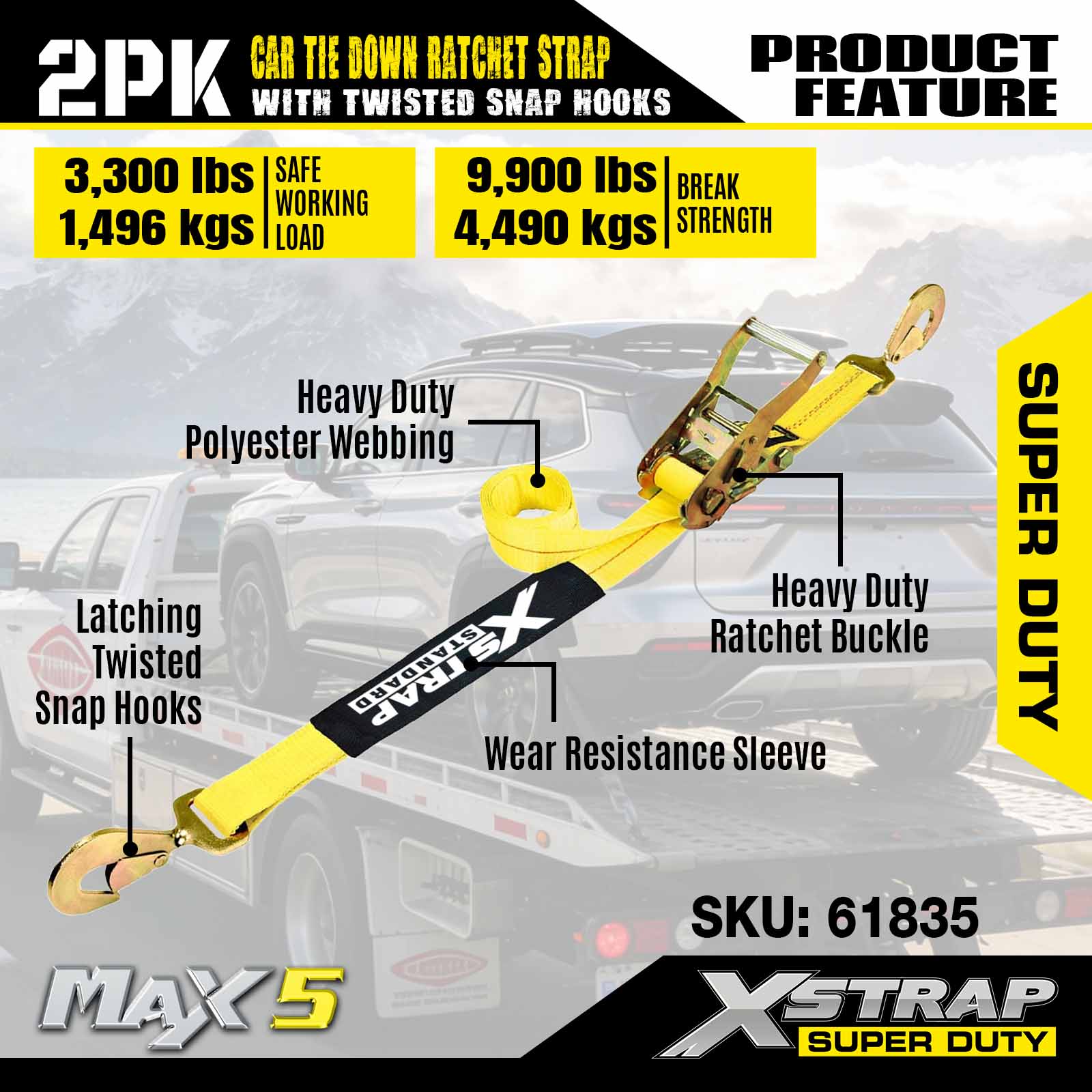 - Všestranný dizajn 2-balení: 2-dielnu súpravu možno použiť na zabezpečenie menšieho nákladu (napr. jedna náprava vozidla) alebo na doplnenie kompletnej sady spojovacích prvkov pre extra stabilitu. Každý popruh je ľahký a ľahko sa skladá, s kompaktným balením, ktoré sa zmestí do úložných priestorov prívesu alebo boxov na náradie.
