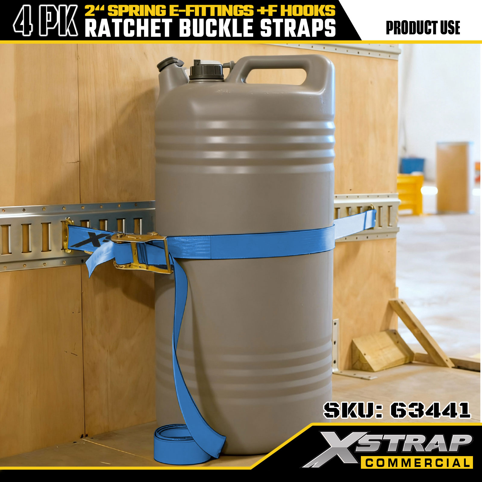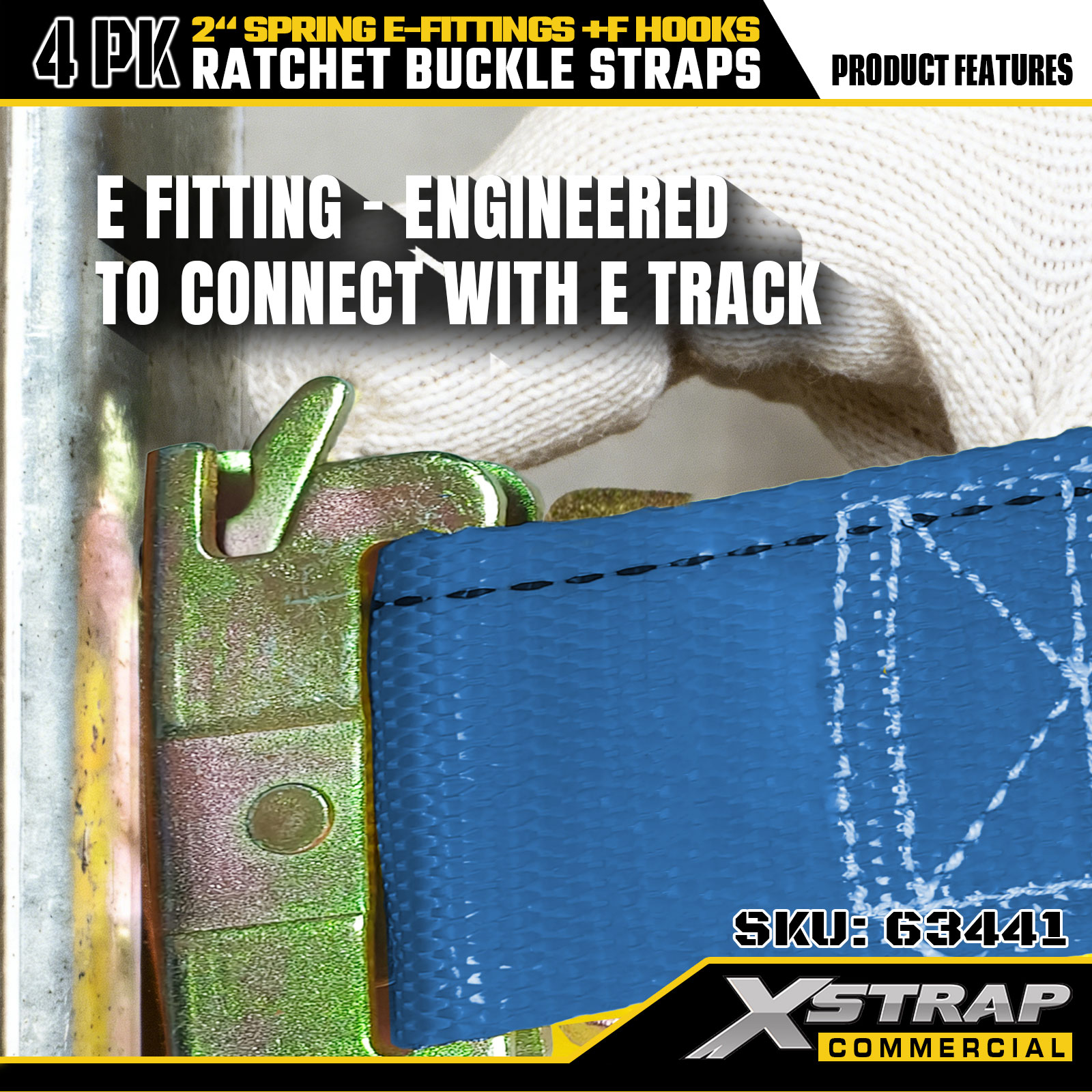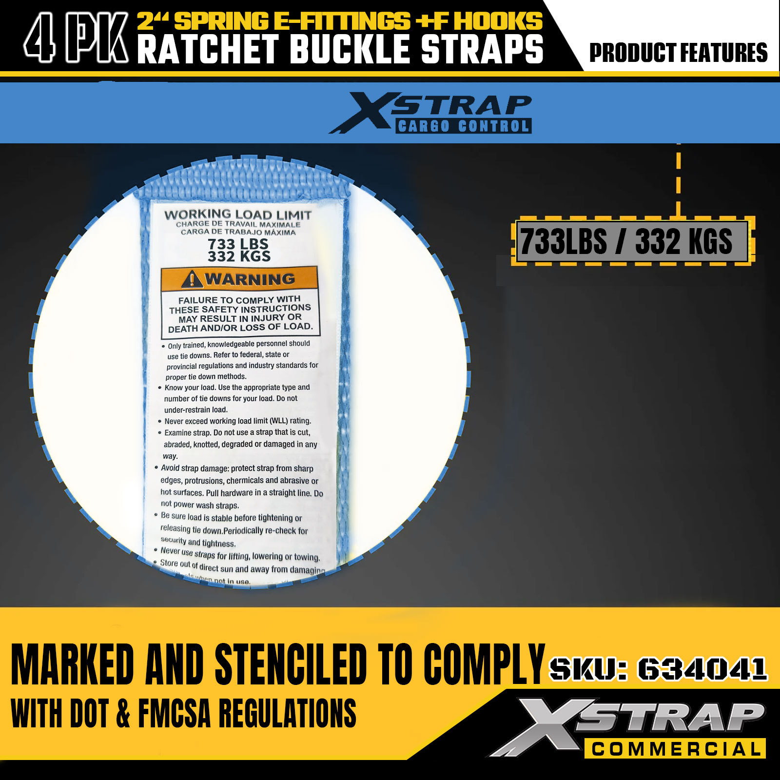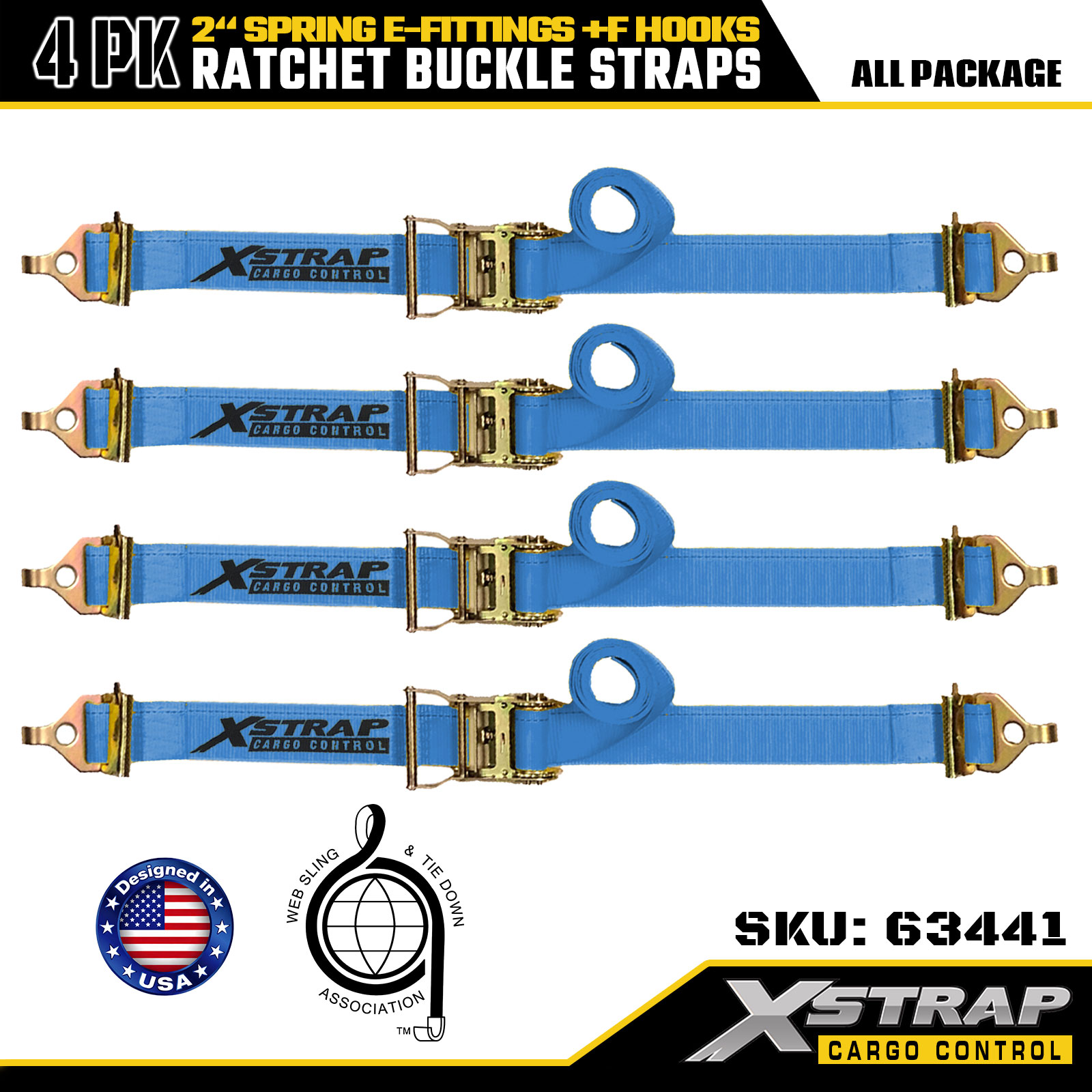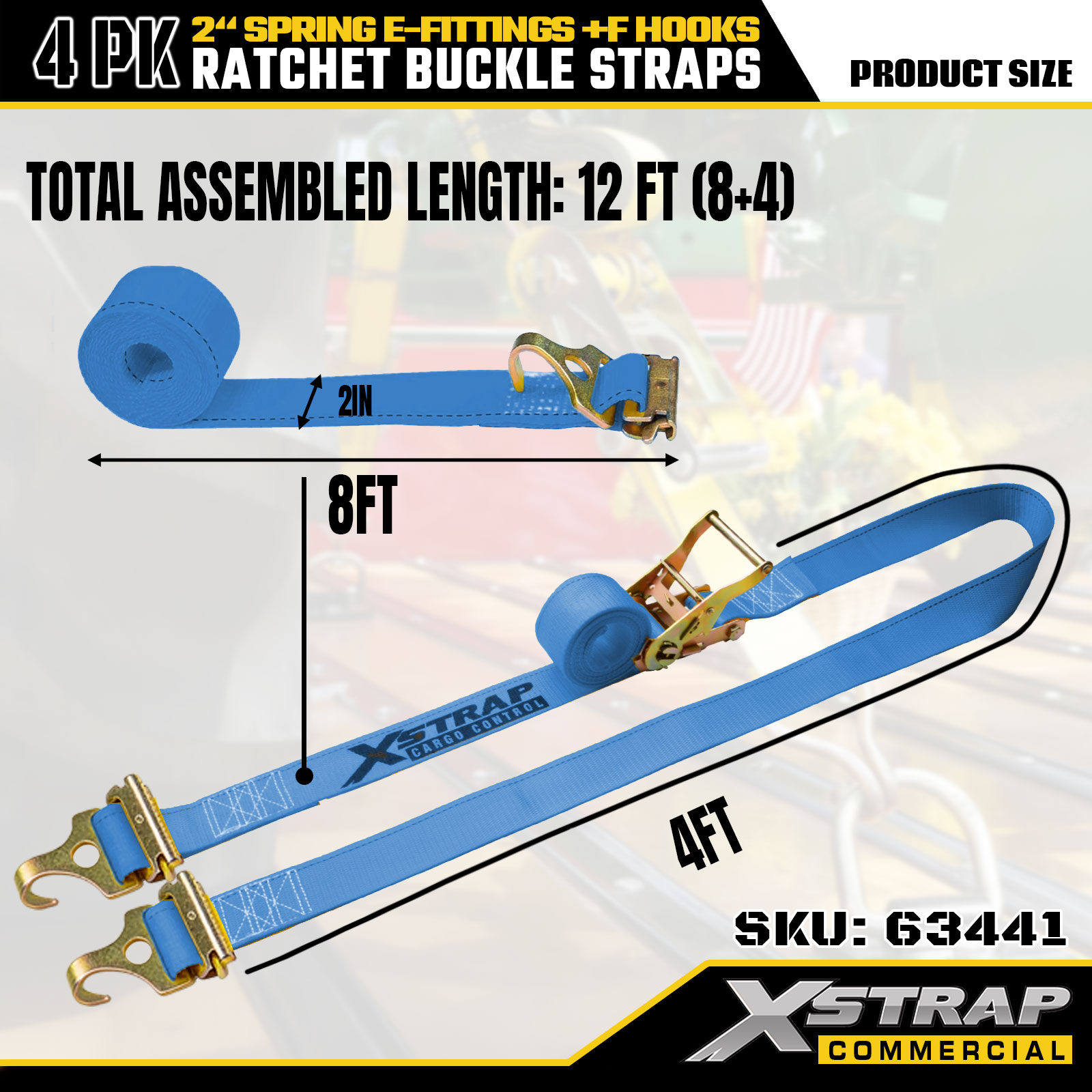 Xstrap 4-balenie račňových upínacích popruhov 2" x 12" Polyester s pružinovými E-kovaniami a F háčikmi, 733 libier SWL & 332 libier medzná sila pre nákladné autá, sťahovanie a všeobecnú nákladnú dopravu