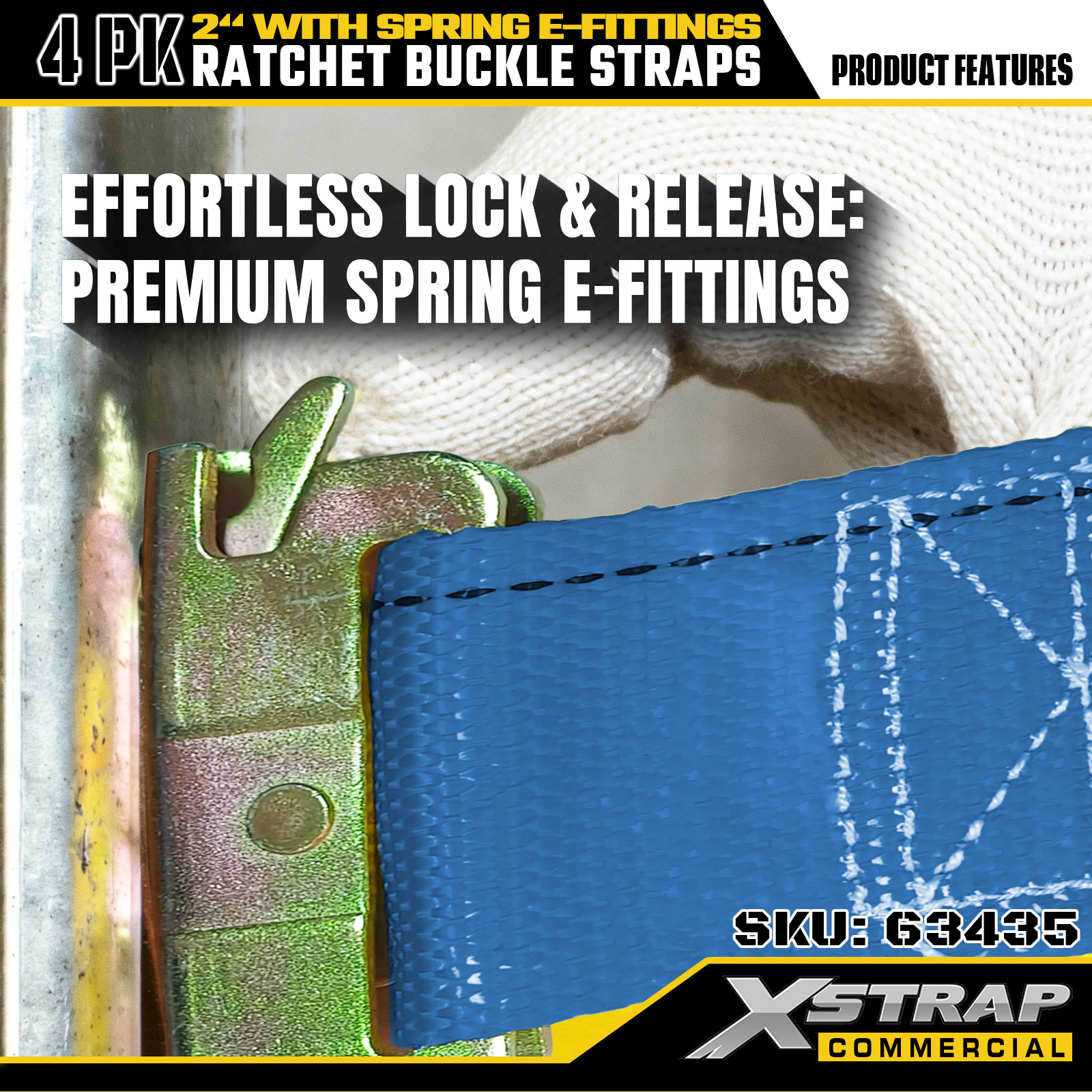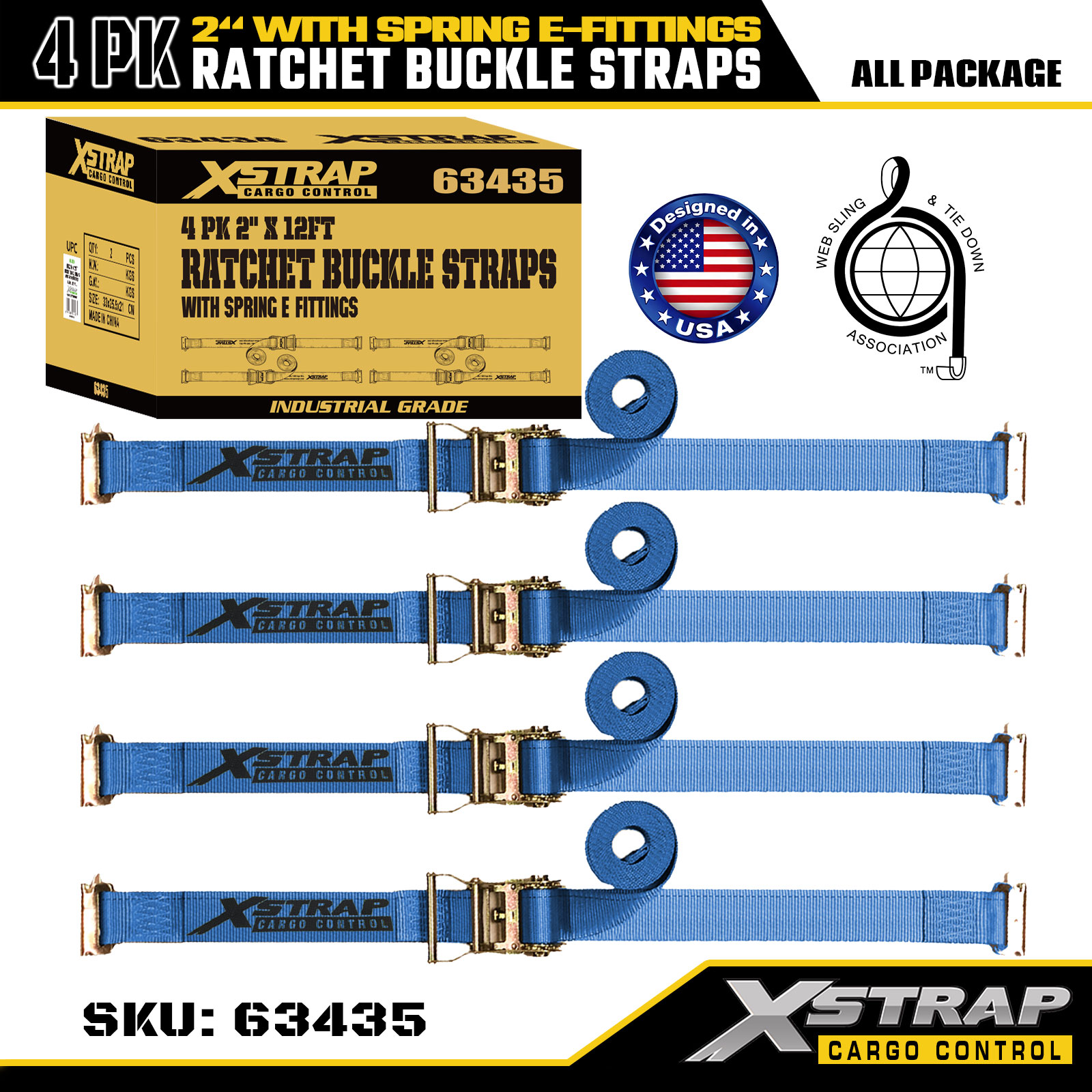 Xstrap 4-balenie račňových upínacích popruhov, 2" x 12" polyesterové popruhy na zaistenie nákladu s pružinovými E-kovaniami, 1467 lb Bezpečné pracovné zaťaženie (SWL) a 4401 lb medzná sila, pre nákladné autá, kosačky, ATV