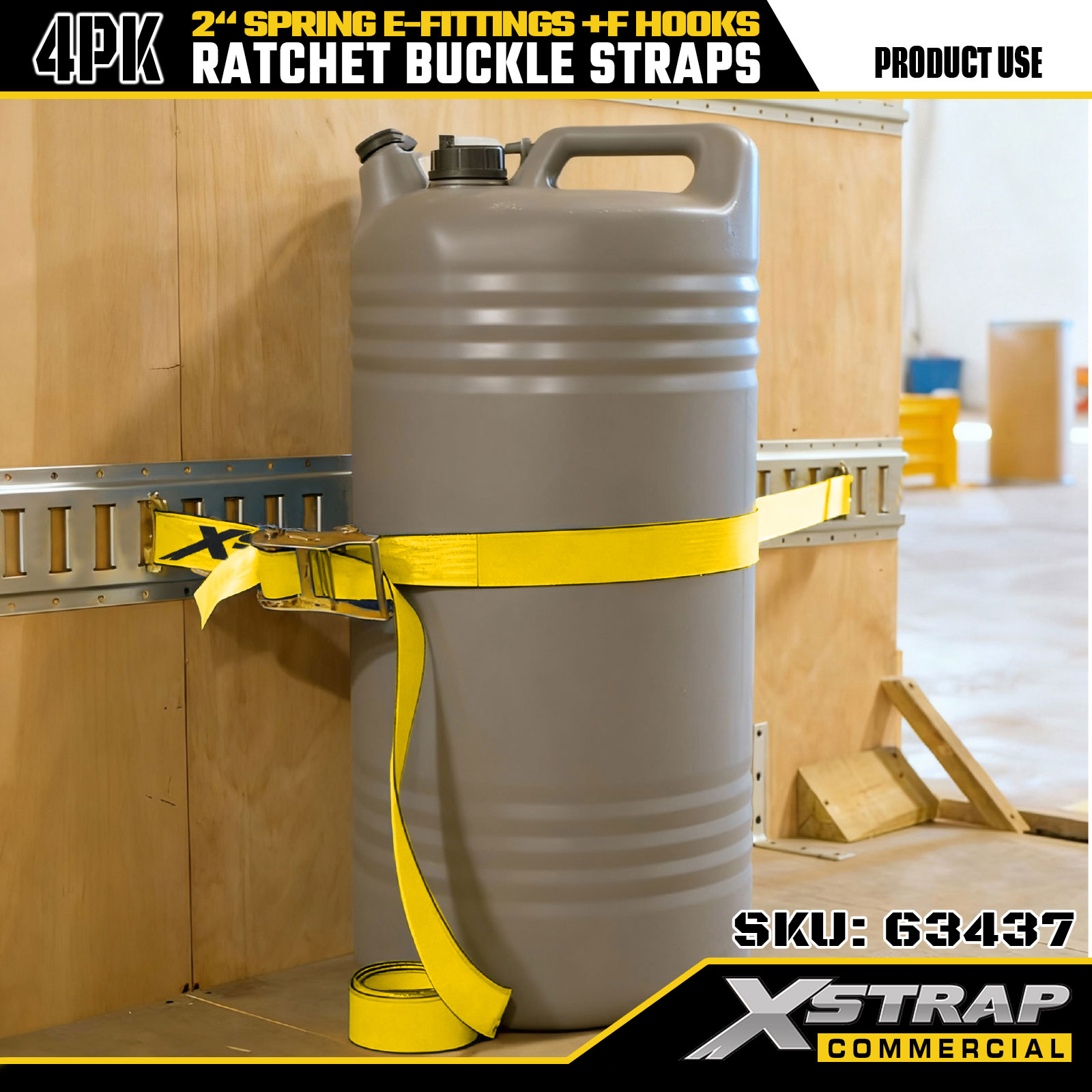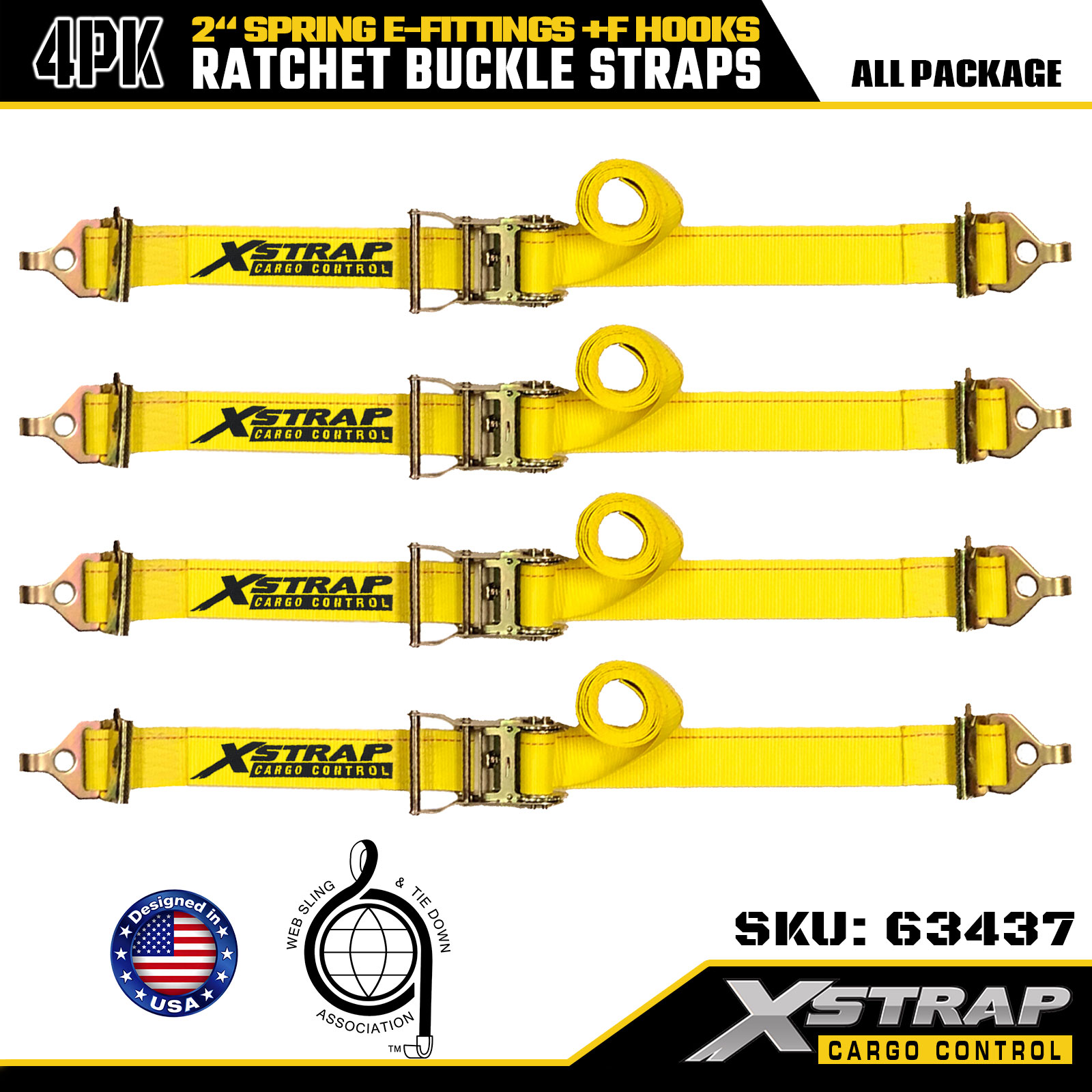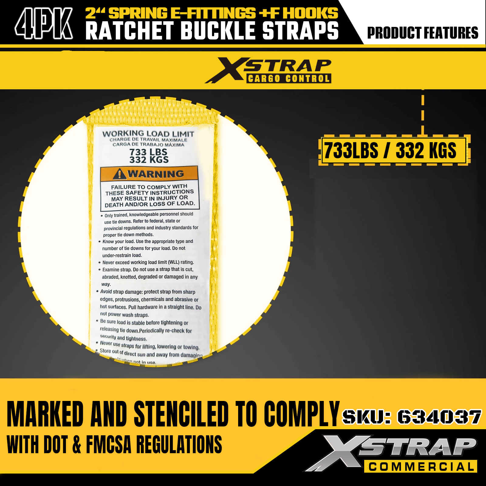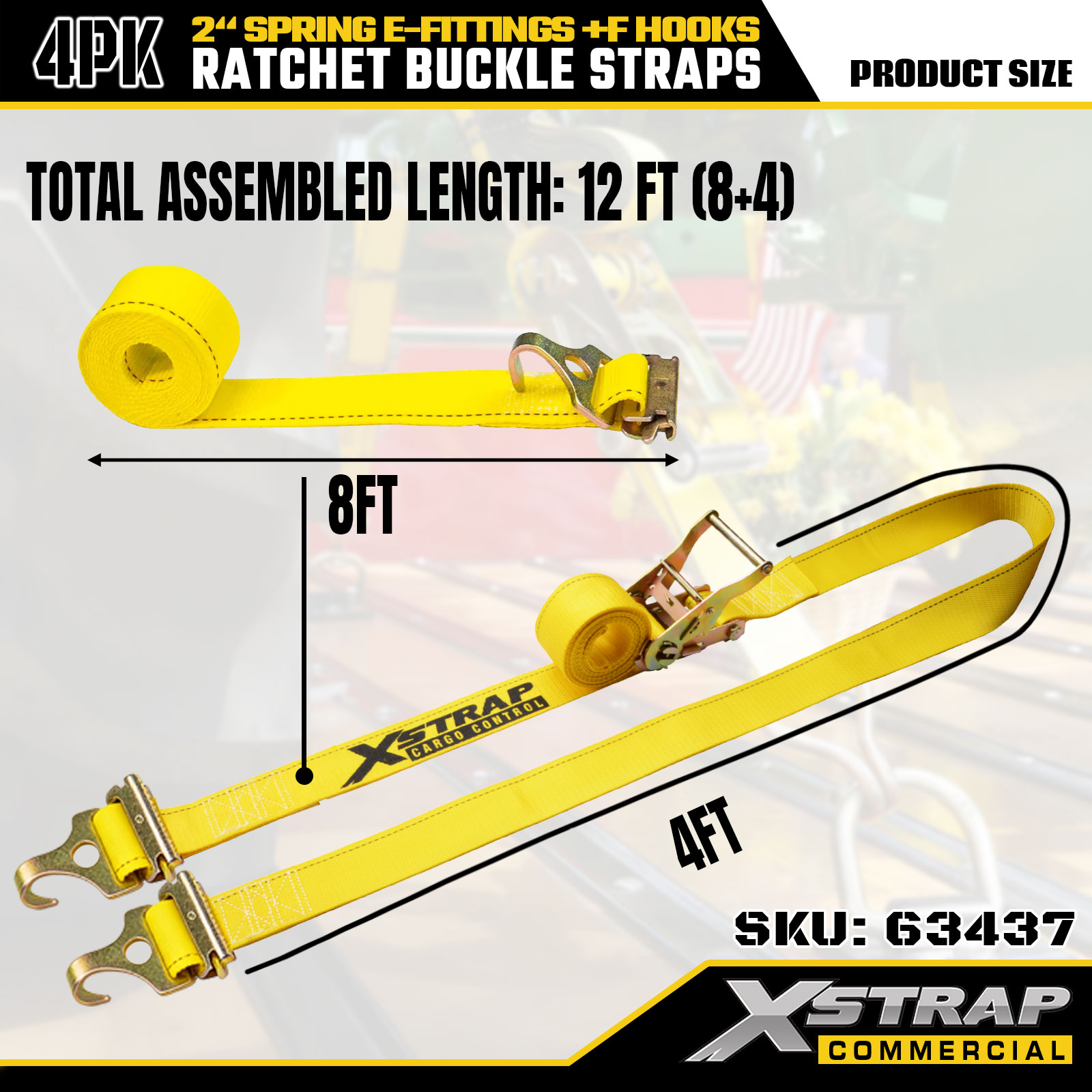 Xstrap 4 balíky Heavy Duty Ratchet Upevňovacích popruhov, 2" x 12" Vysokopevnostný polyester s pružinovými E armatúrami a F háčikmi, 733 lb Heavy Duty Cargo Upevňovacie pásy pre prívesy, nákladné autá, dodávky a motocykle