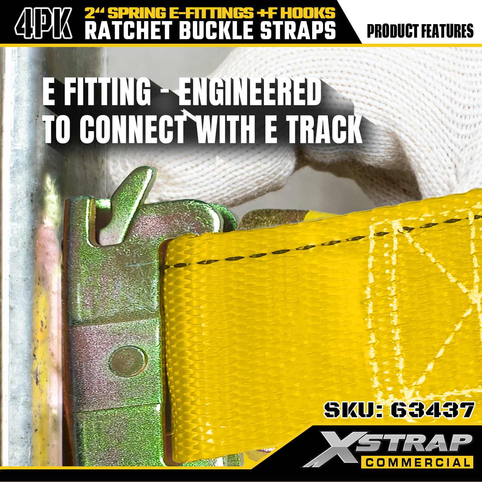 2" x 12" 4PK račňové popruhy s pružinovými E-kovaniami a háčikmi F