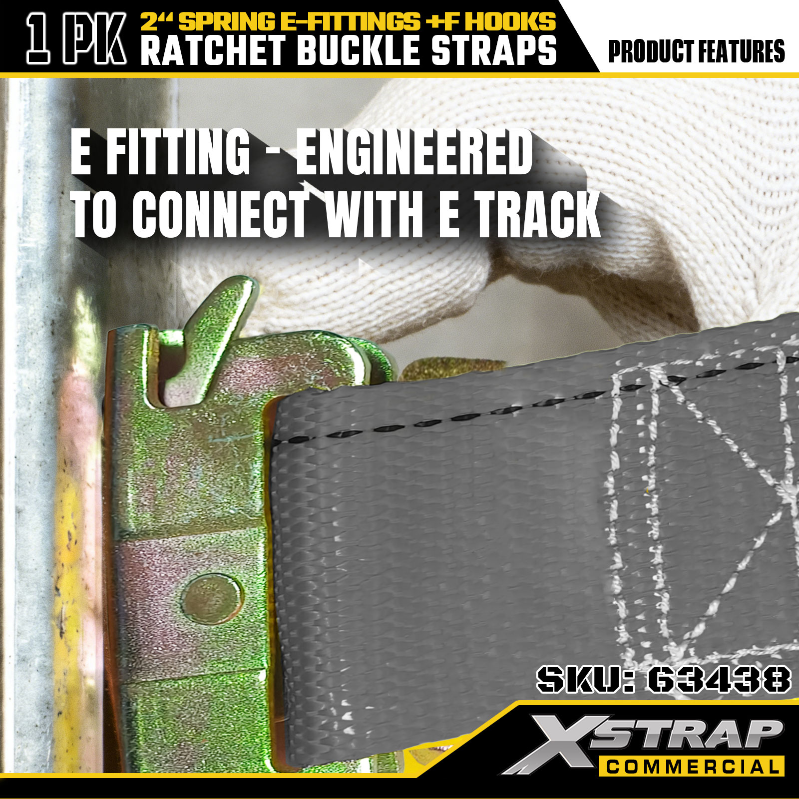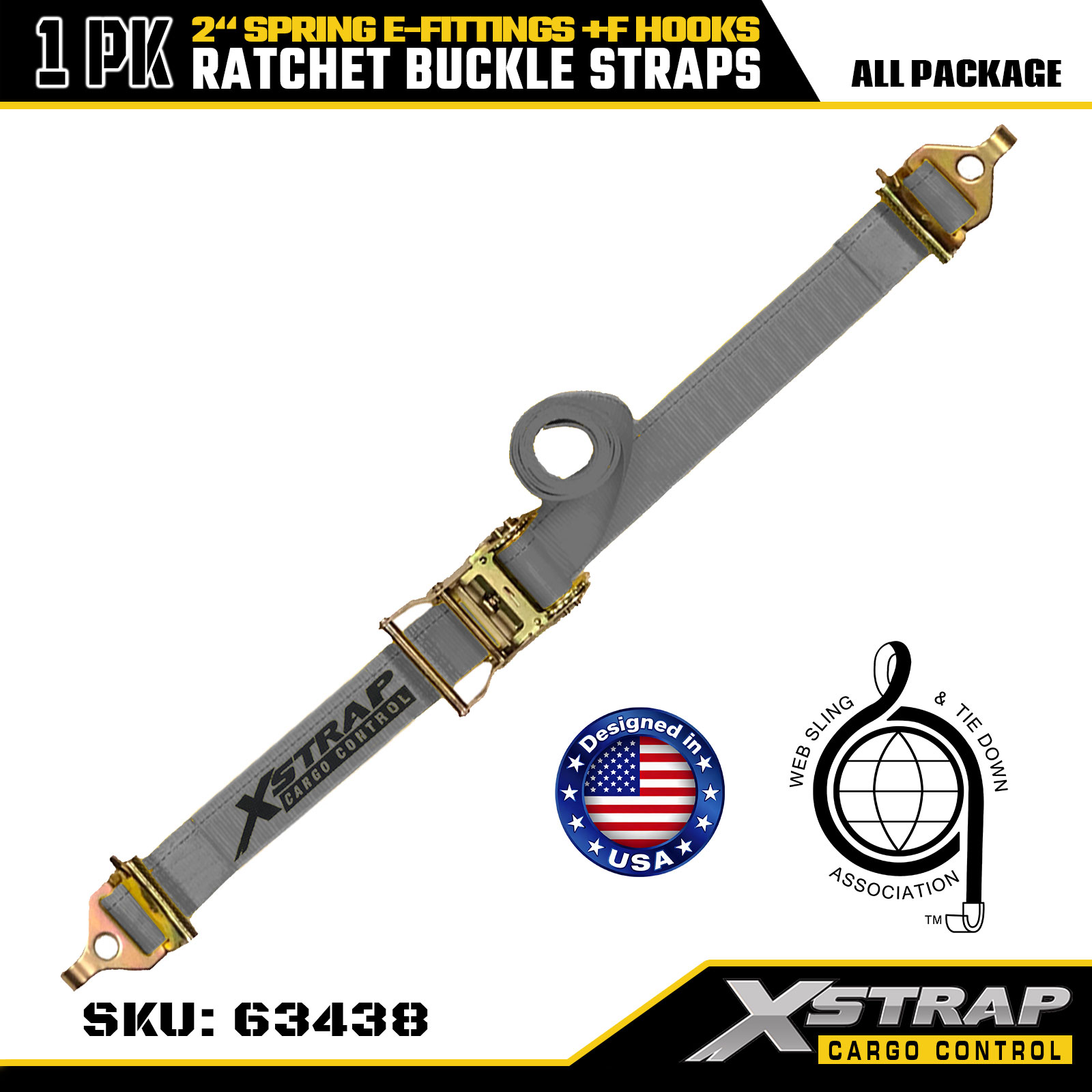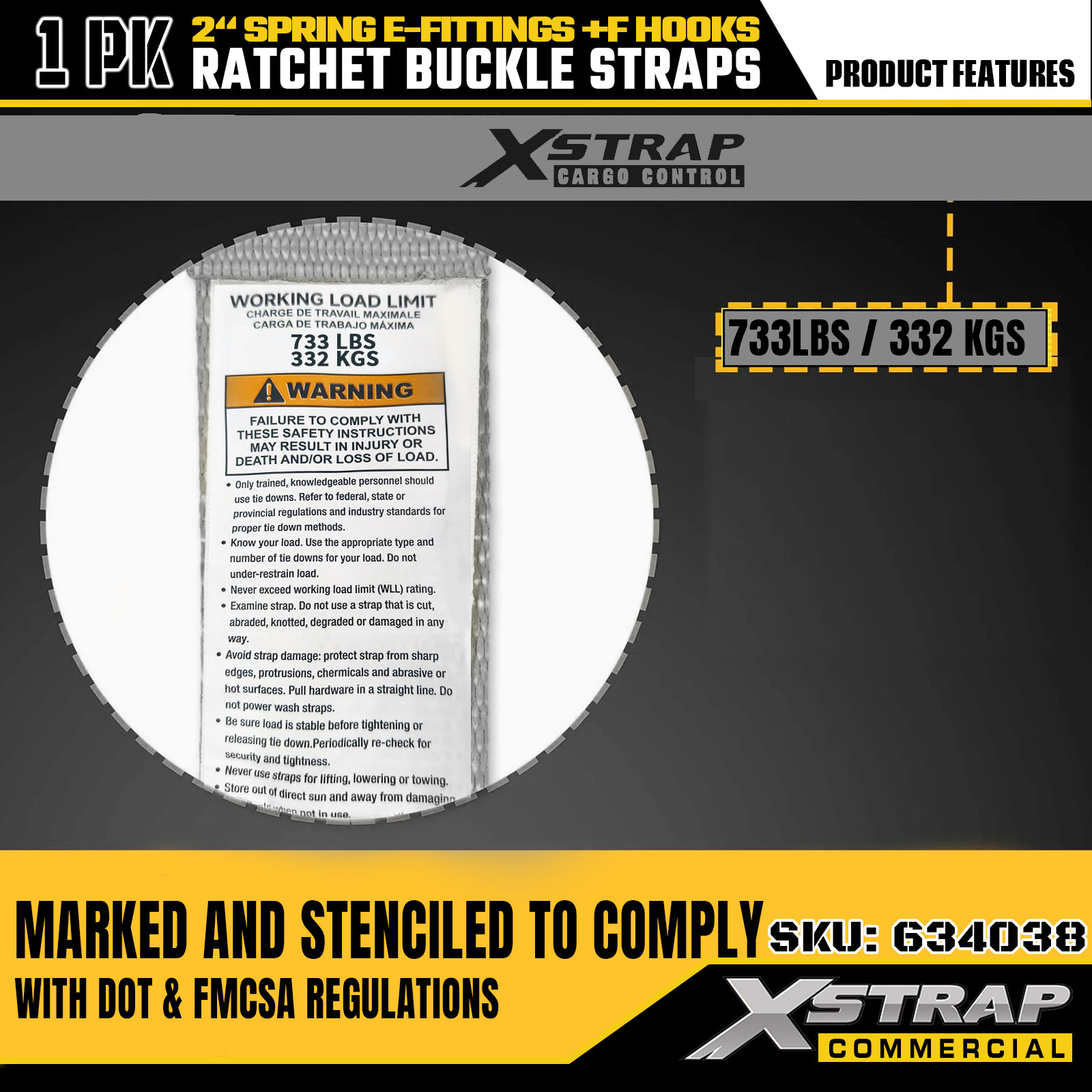 Xstrap 1 balenie račňových upínacích popruhov 2" x 16" Polyester s pružinovými E-kovaniami a F háčikmi, 733 libier SWL & 332 libier medzná sila pre kamión, sťahovanie a všeobecnú nákladnú dopravu