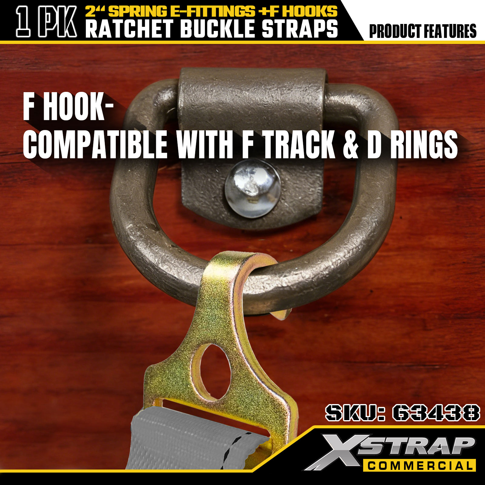 2" x 16" 1PK račňové popruhy s pružinovým E-fitingom a háčikmi F