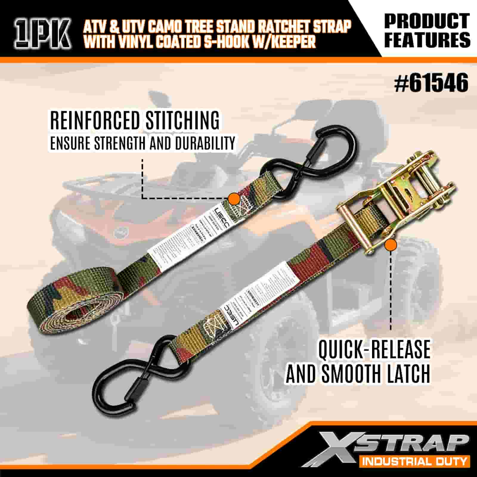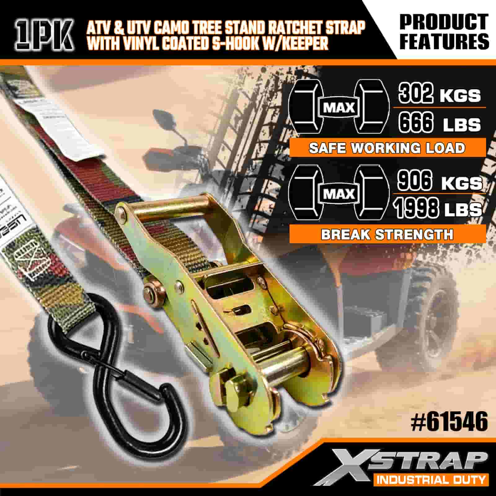 - Blend In, Lock In: Maskovací dizajn umožňuje remienku splynúť s vonkajším prostredím, zatiaľ čo jeho zosilnené prešívanie a robustná račňa udržia vašu ATV, stojan na strom alebo motocykel pevne uzamknuté. Už žiadne starosti s presúvaním nákladu na nerovnom teréne.