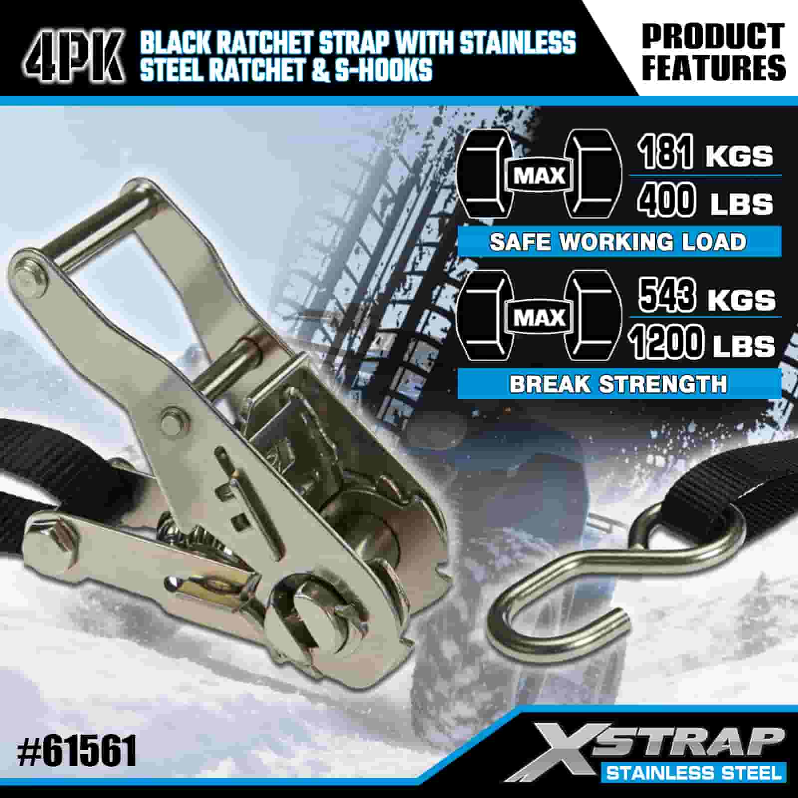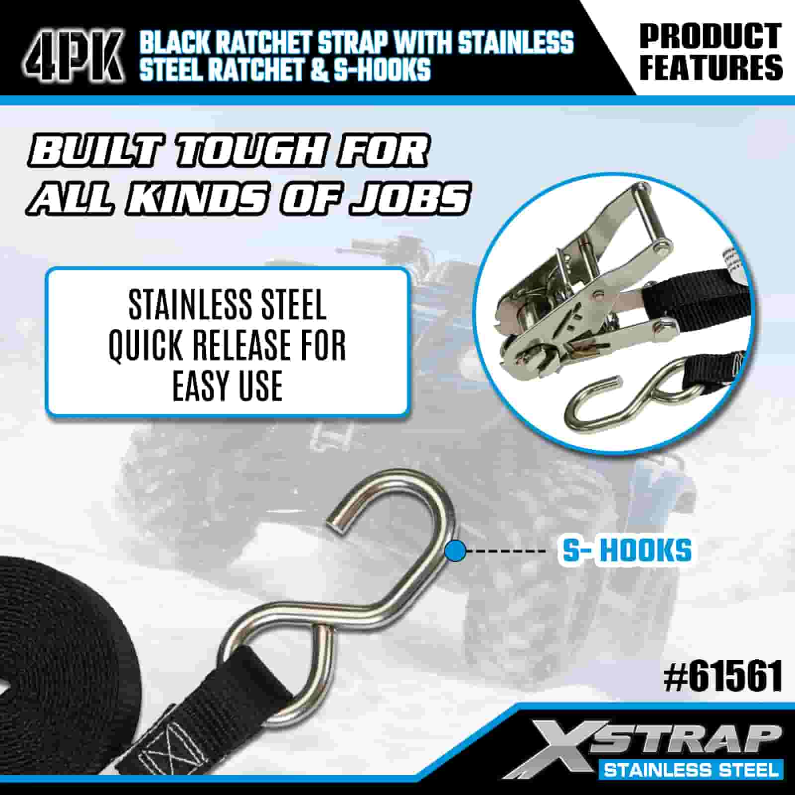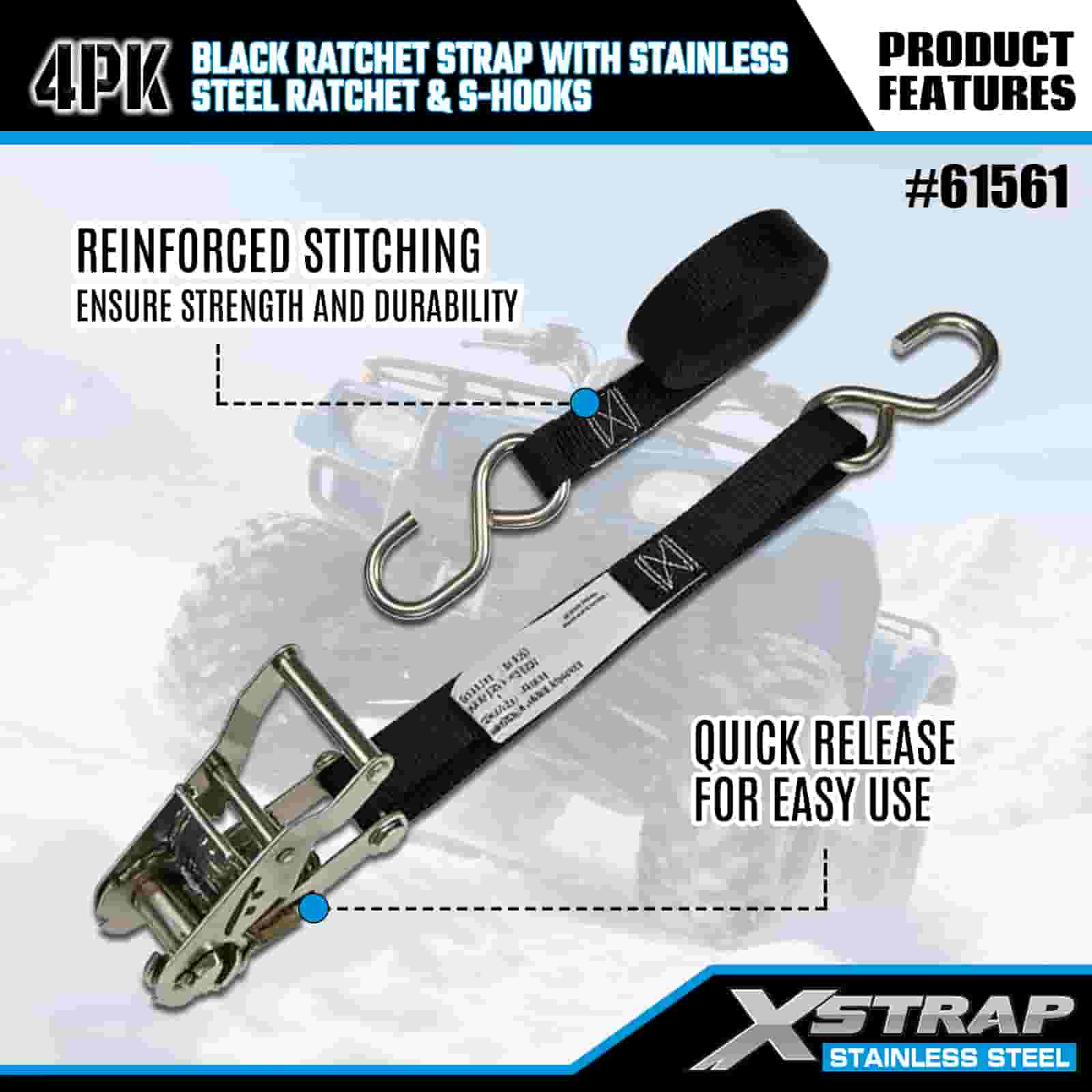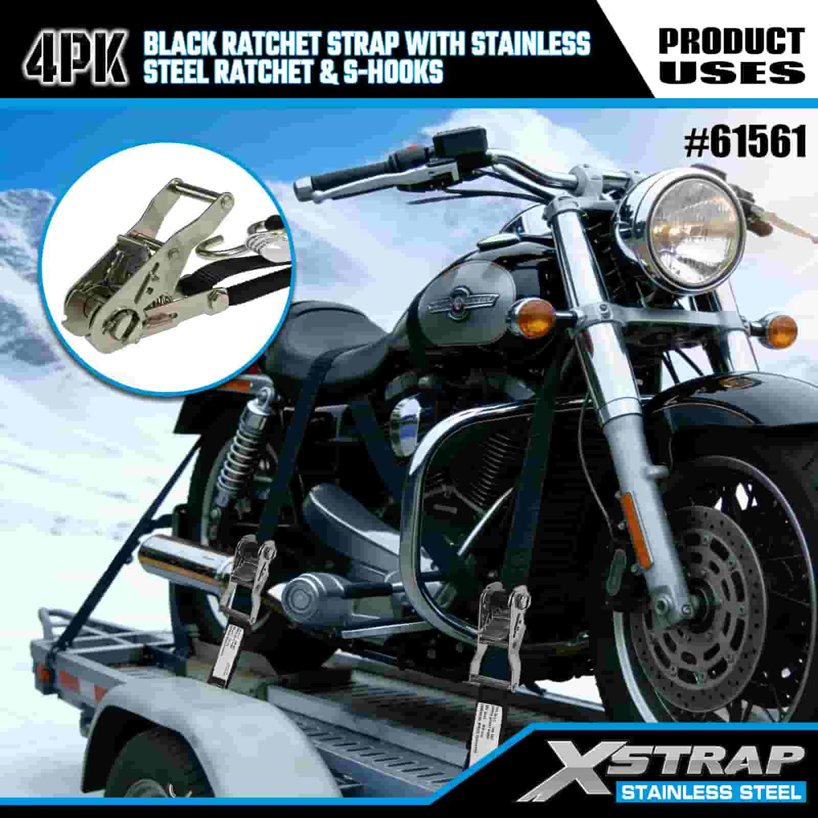 - Kompaktná sila, skonštruovaná pre ťahanie motocyklov a štvorkoliek: Toto 4-balenie račňových popruhov, navrhnuté špeciálne na zaistenie motocyklov a štvorkoliek na prívesoch, poskytuje spoľahlivé uchytenie bez veľkého objemu. 20-ročná odbornosť spoločnosti XStrap v oblasti kontroly nákladu zaisťuje, že vaša jazda zostane uzamknutá na mieste, a to aj na hrboľatých horských cestách.