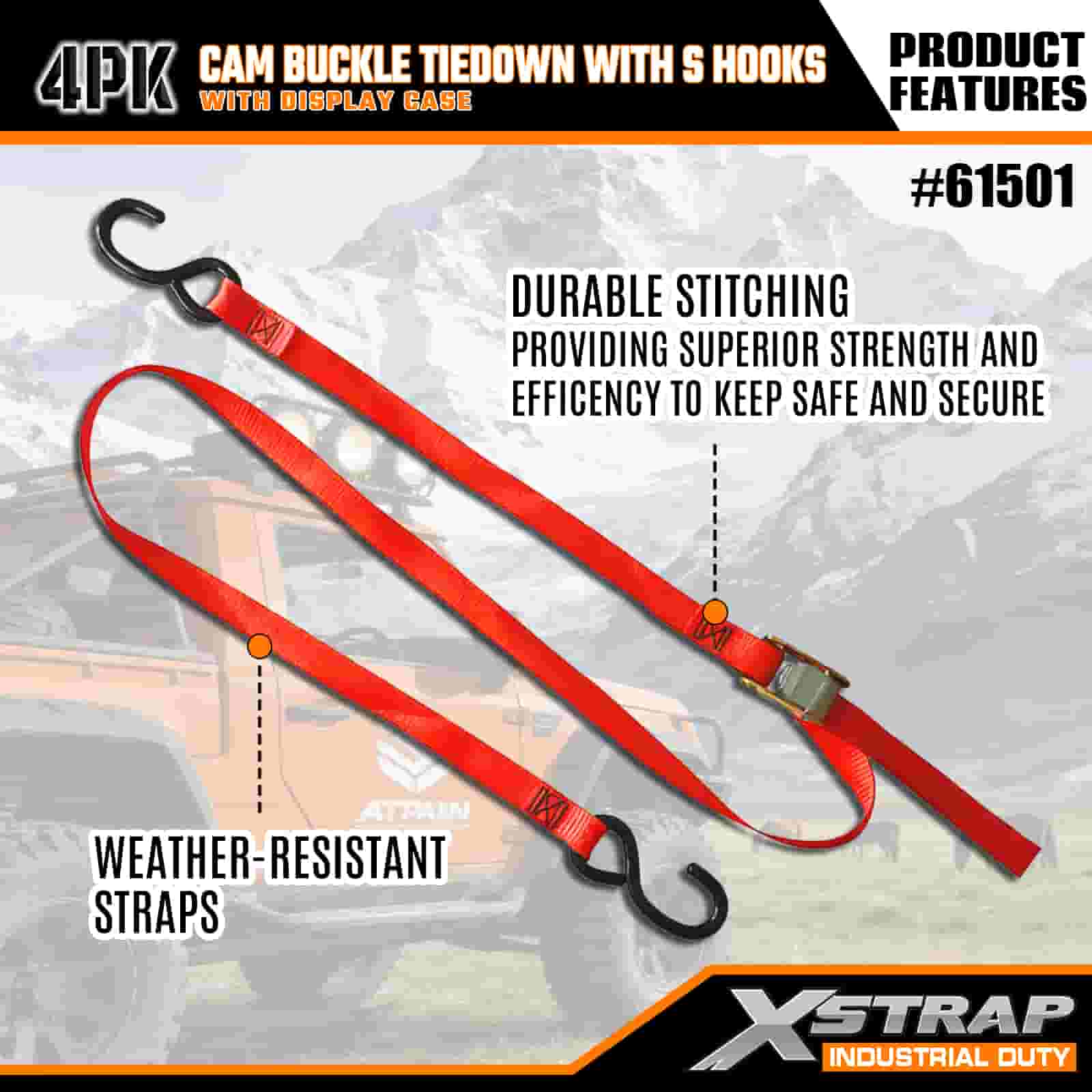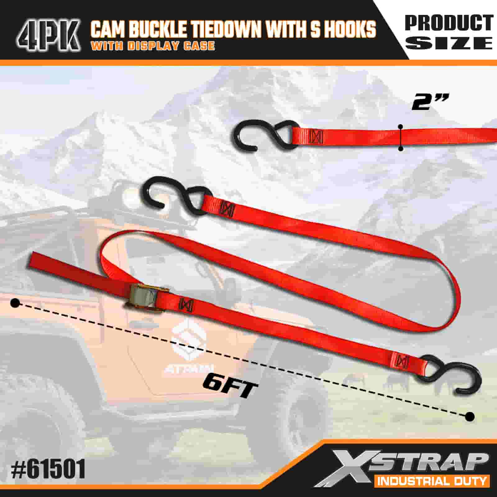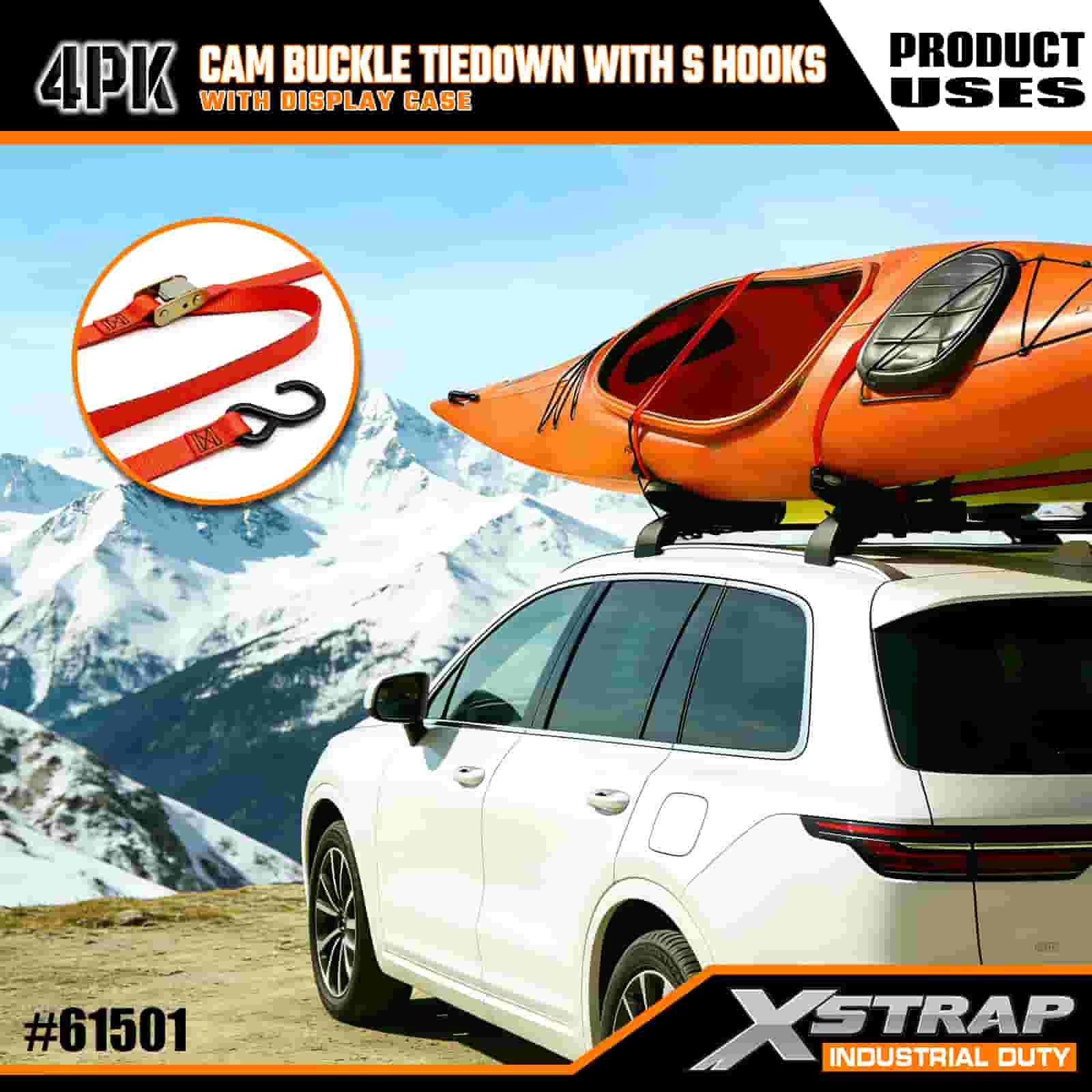 - Praktické 4-balenie s vitrínou: Predáva sa v sade 4 kusov (s vitrínovým balením) na dávkové použitie a každý popruh meria 2 palce na šírku × 6 stôp na dĺžku, čo je ideálne na zabezpečenie predmetov, ako sú kajaky, outdoorové vybavenie alebo náklad.