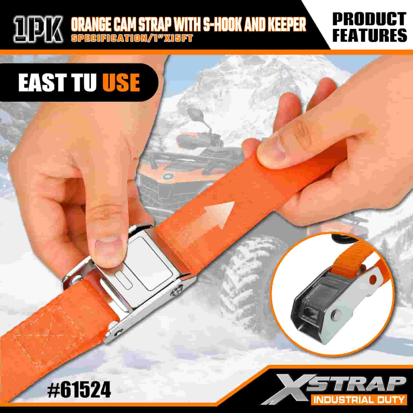 - Dĺžka 15 ft pre všestranné použitie: Predáva sa ako jeden popruh (šírka 1 palec × dĺžka 15 stôp) s úložným priestorom na cievku, ideálny na zabezpečenie štvorkoliek, motocyklov a vonkajšieho vybavenia v nákladných autách alebo na strešných nosičoch.