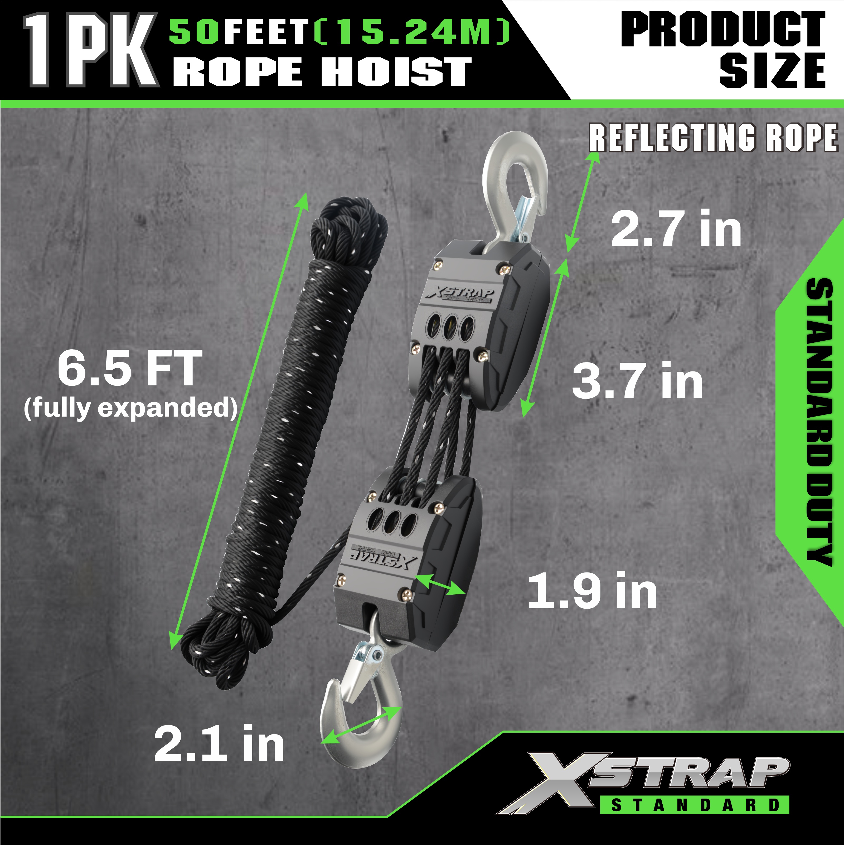 Toto je XSTRAP STANDARD Reflexná kladka lanového kladkostroja s kapacitou 2 000 LB. Je navrhnutý s 50 stopovým blokom kolies a systémom náradia. A v tejto sade sú tiež 2ks 18 palcové mäkké slučky a 1 pár pracovných rukavíc.