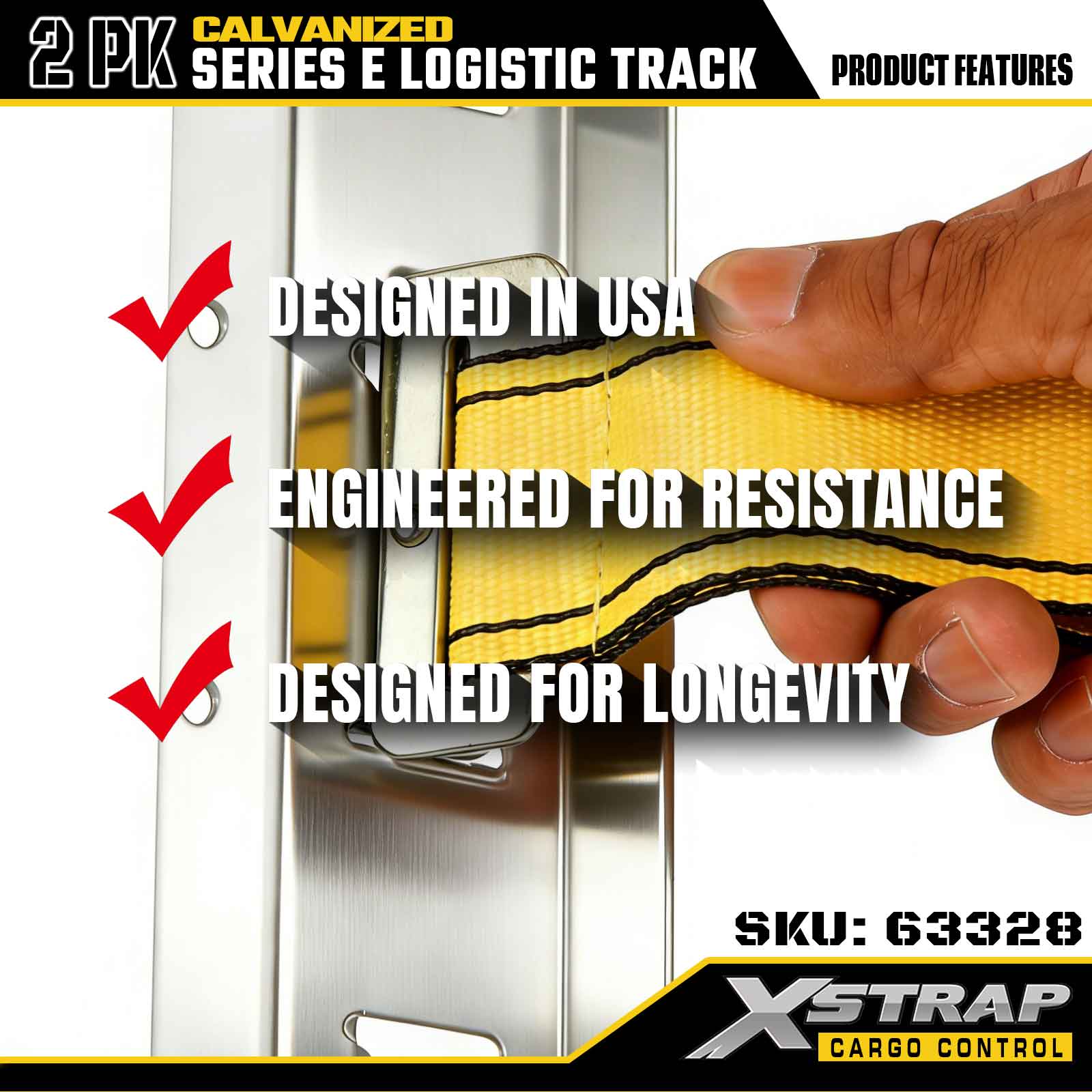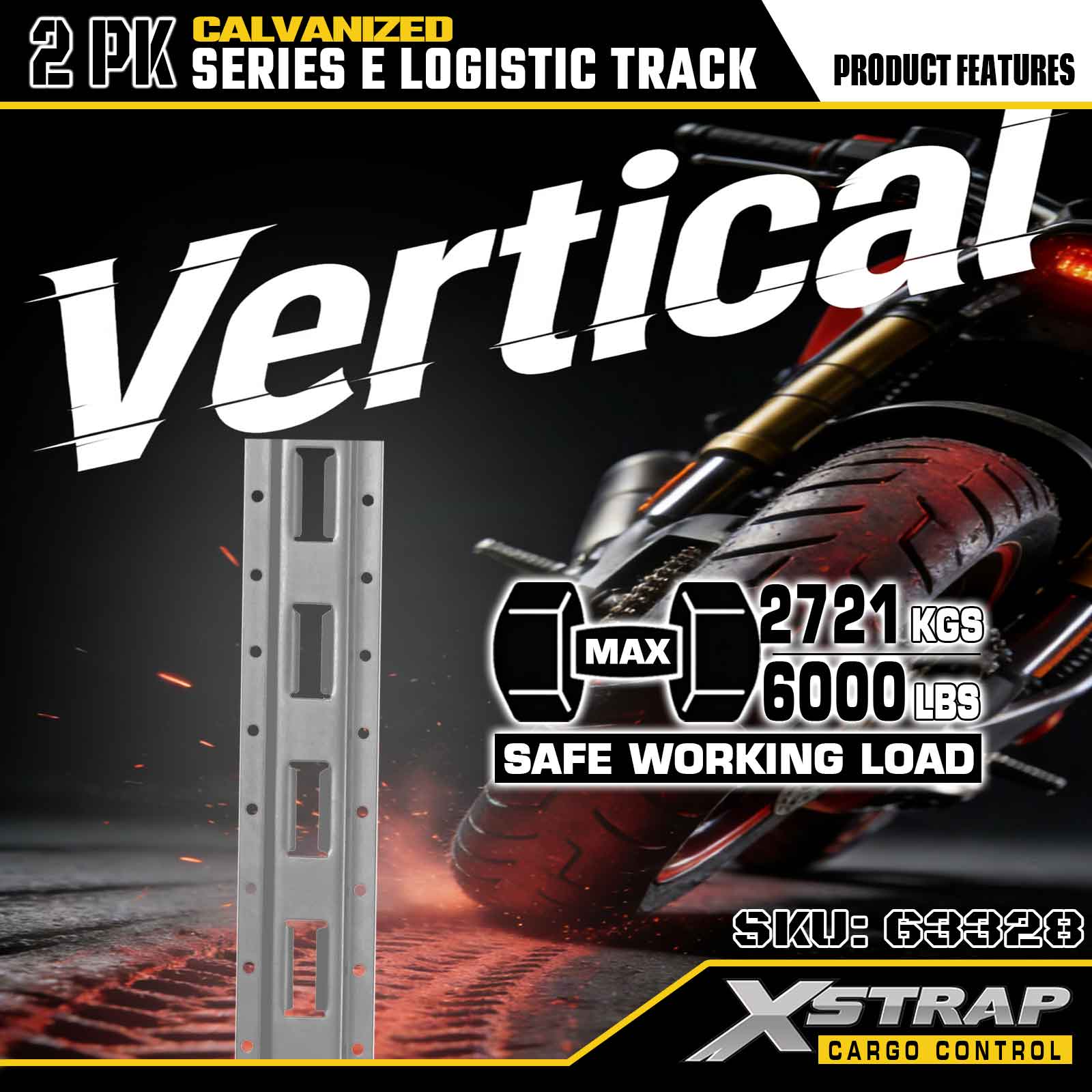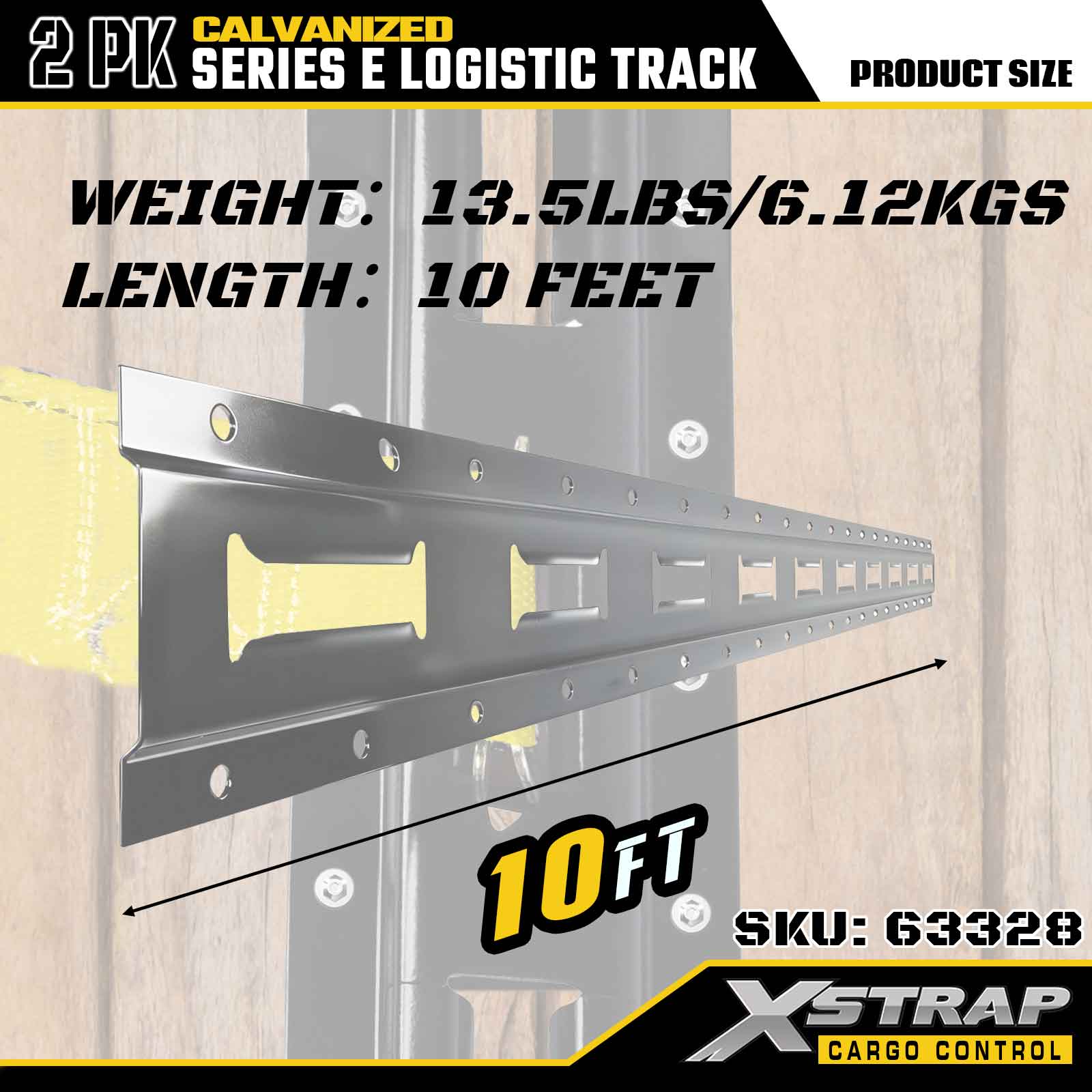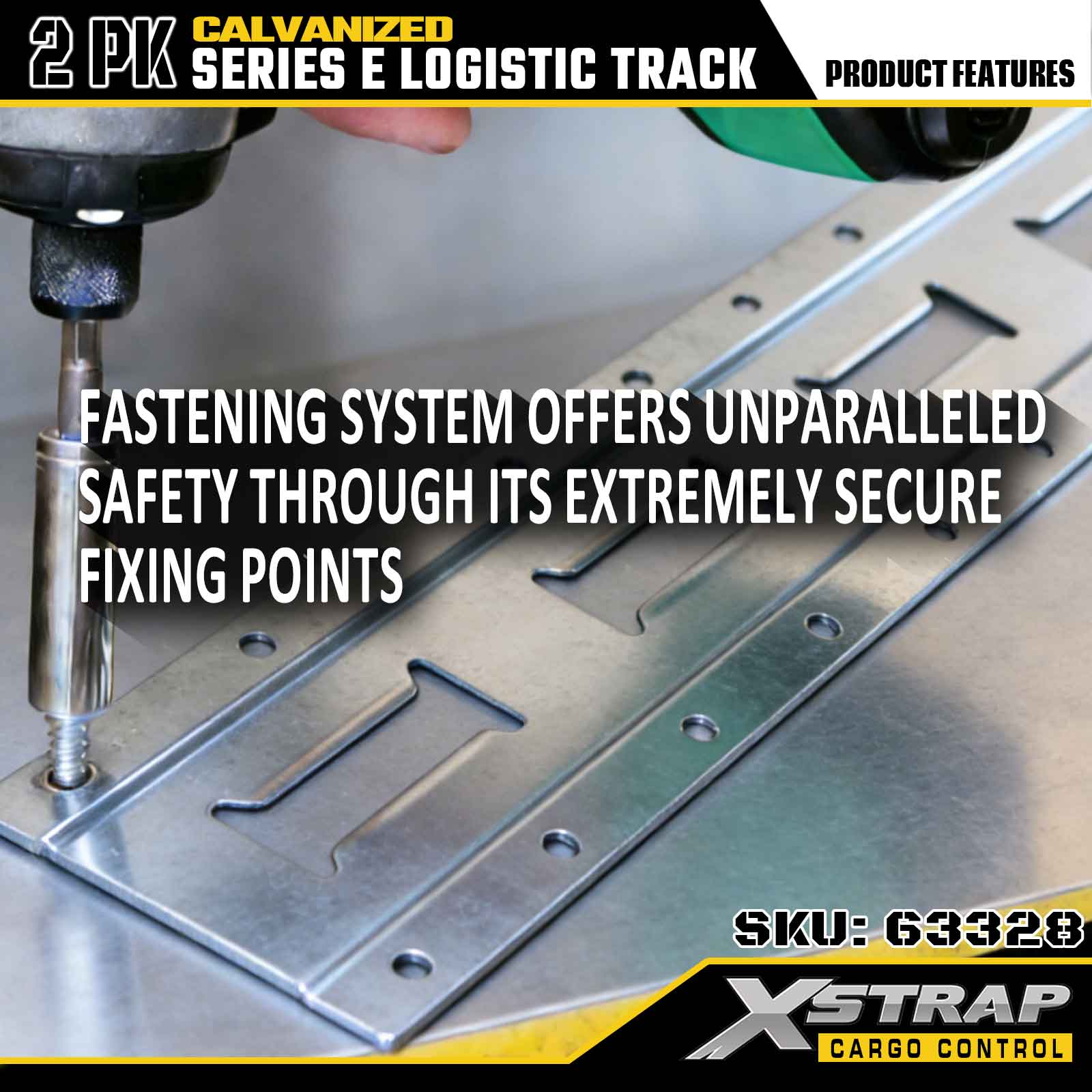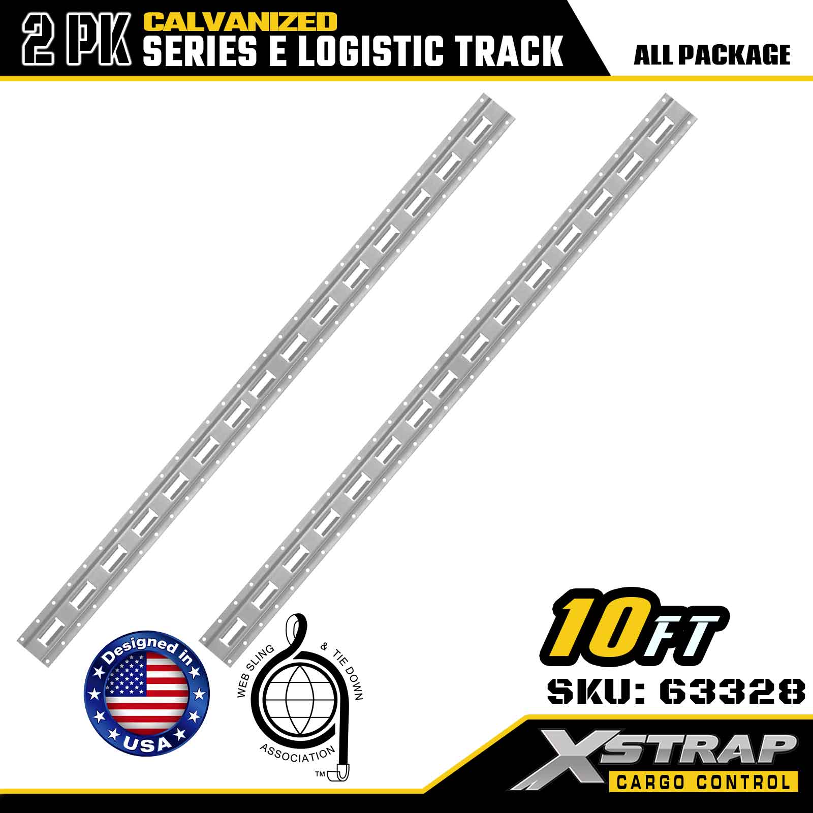 Xstrap 63328 10 stôp galvanicky pokovovaná strieborná upínacia koľajnica E-Track – oceľ 12 kalibru s galvanizovanou povrchovou úpravou, nosnosť 6000 LBS, 2 kusy na zabezpečenie nákladu