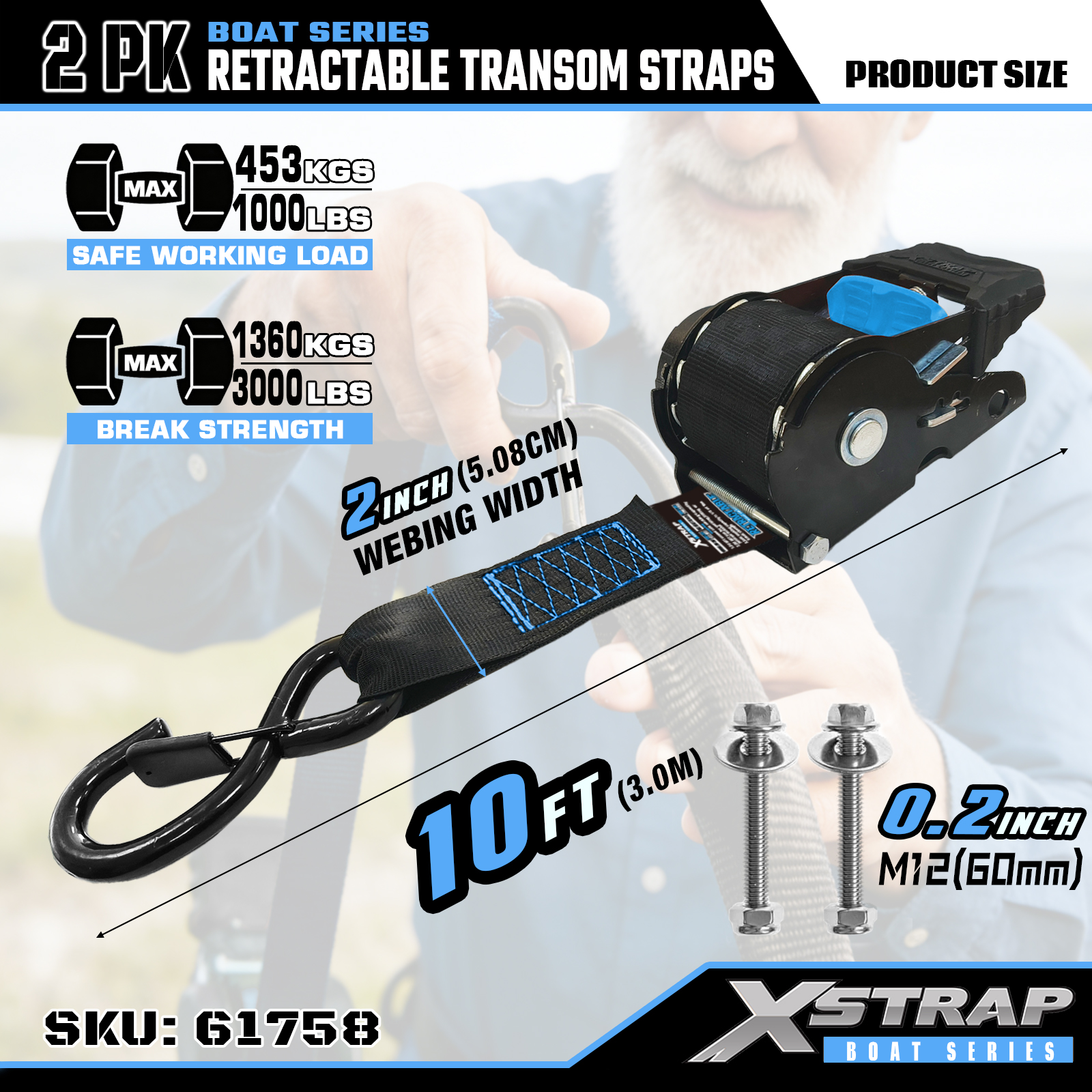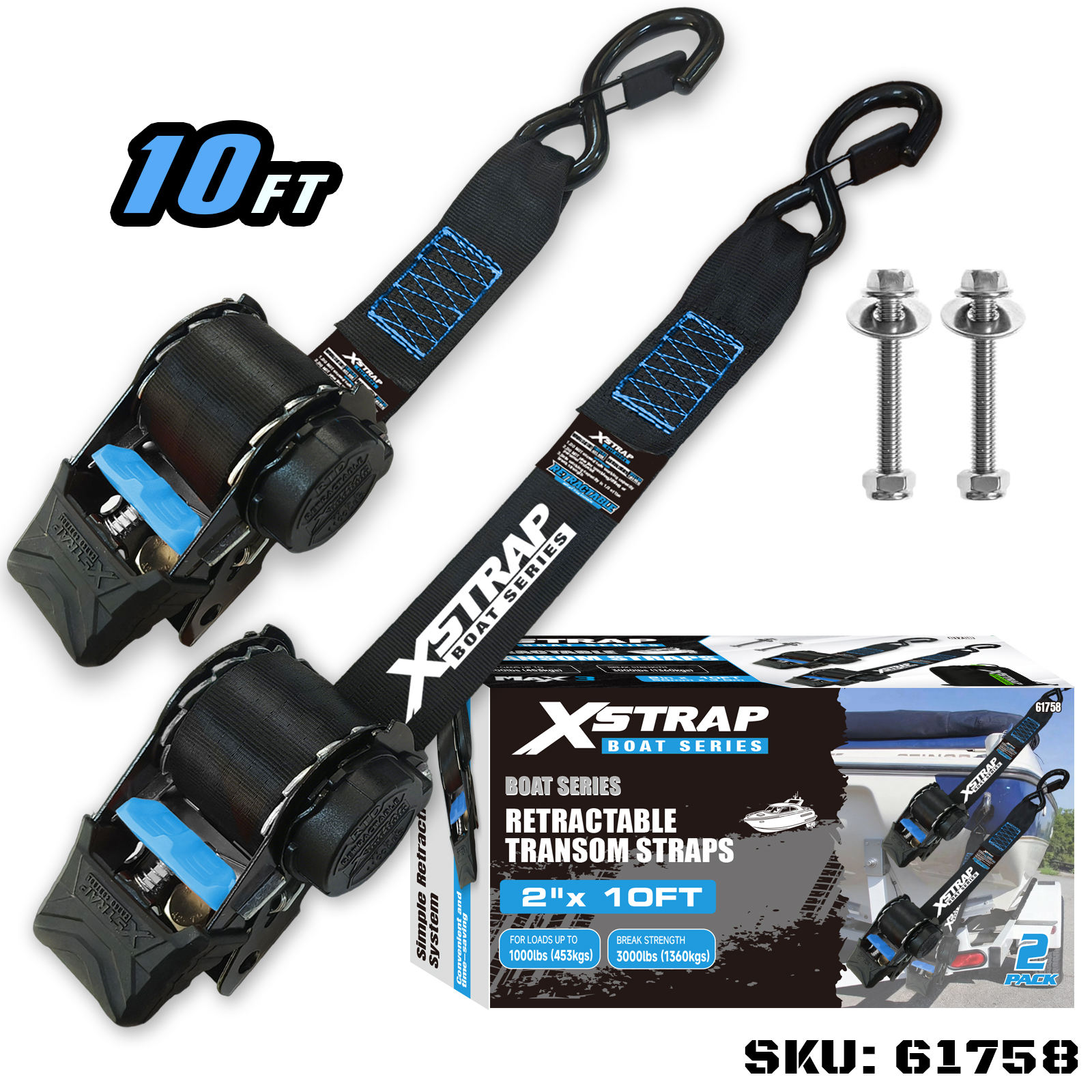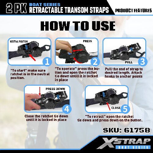 Xstrap 61758 Zaťahovacie popruhy s bezpečnostnými háčikmi 1 000 LB SWL