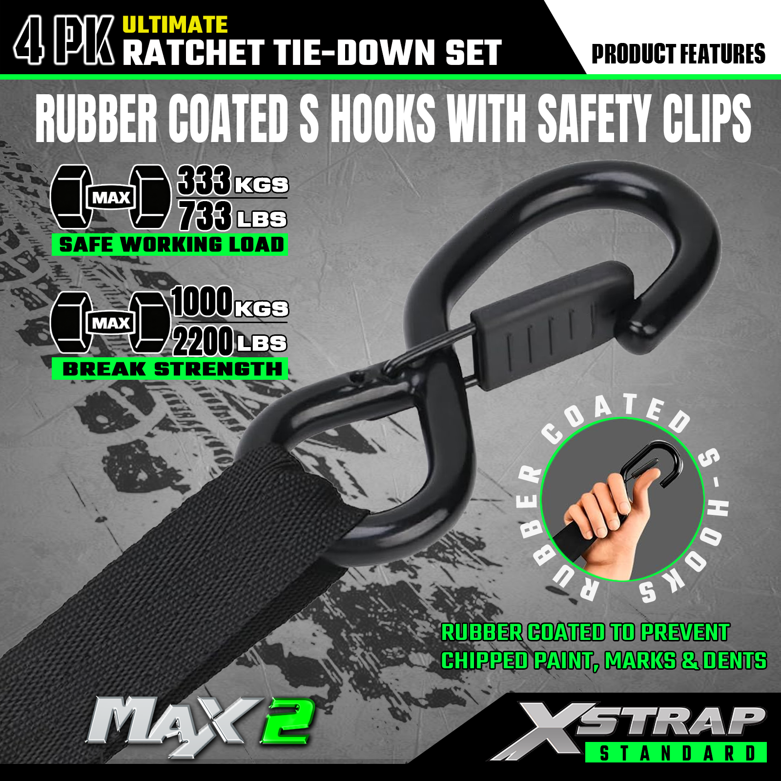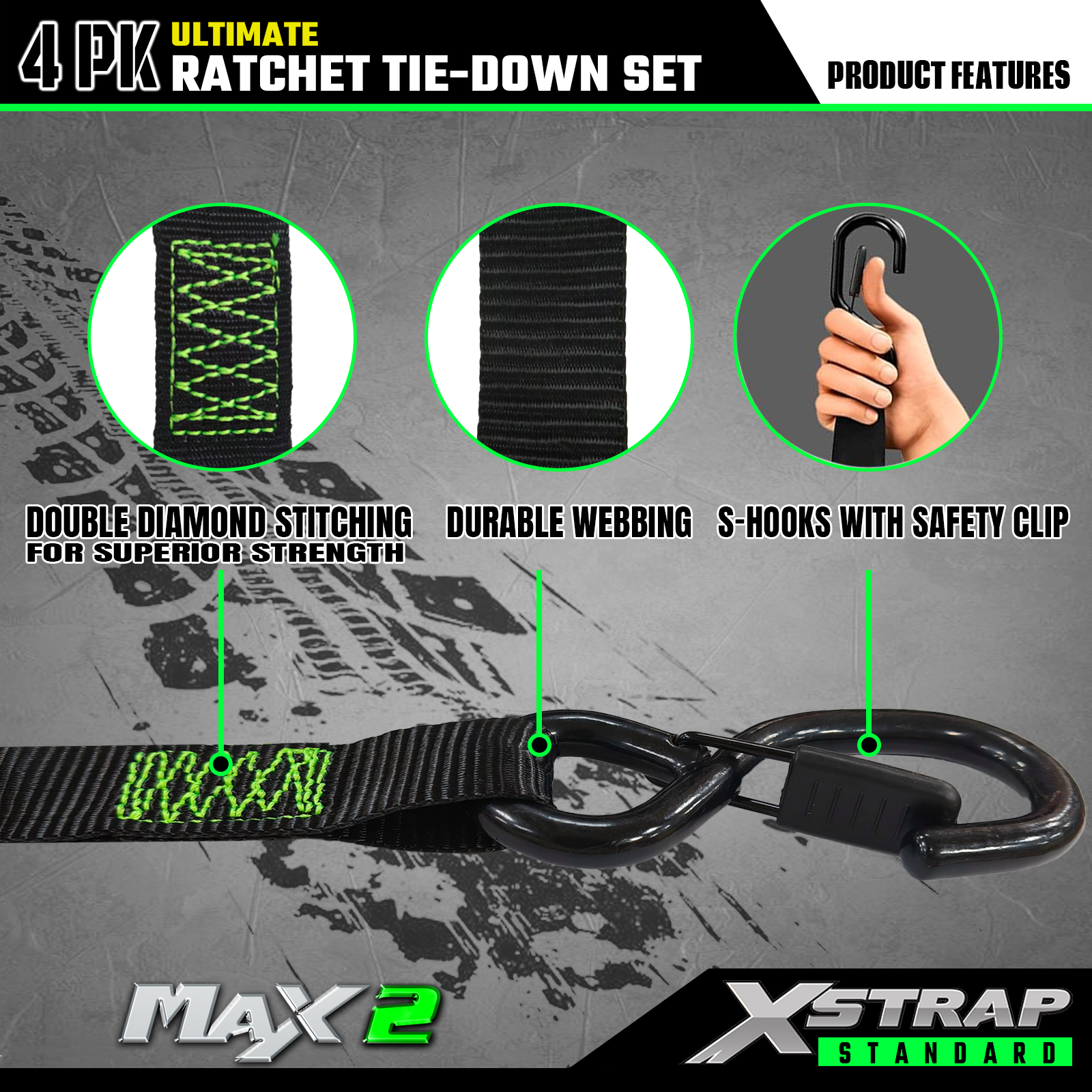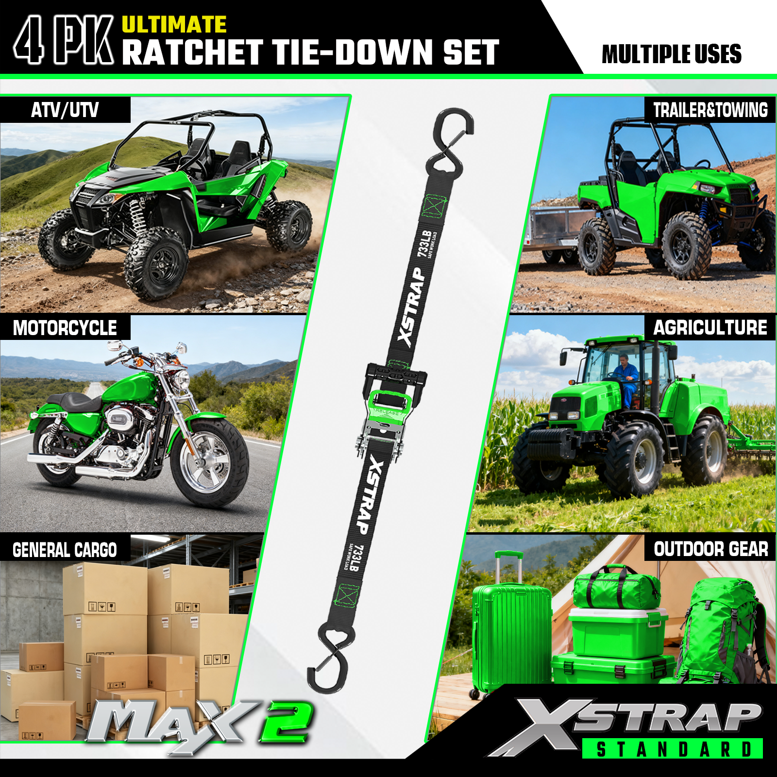 - Spoľahlivá preprava: 4ks račňové upínacie popruhy ponúkajú 733 lb SWL a 2 200 lb BS. Môže poskytnúť bezpečnú prepravu pre motocykle, spotrebiče a vybavenie trávnika