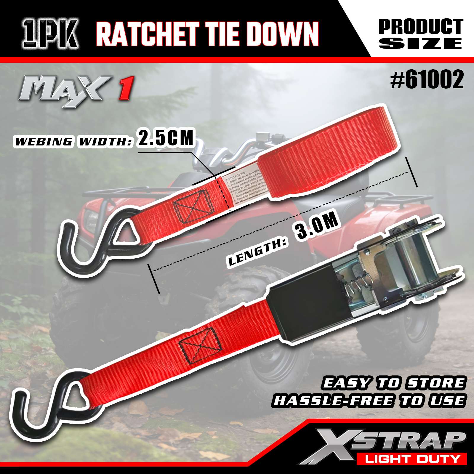 Xstrap 1 balenie račňových upínacích popruhov, 1" x 10" – 300 libier záťažového uzáveru – 900 libier pevných popruhov na prepravu nákladu pre pohyblivé zariadenia, trávnikové vybavenie, motocykel, kamufláž