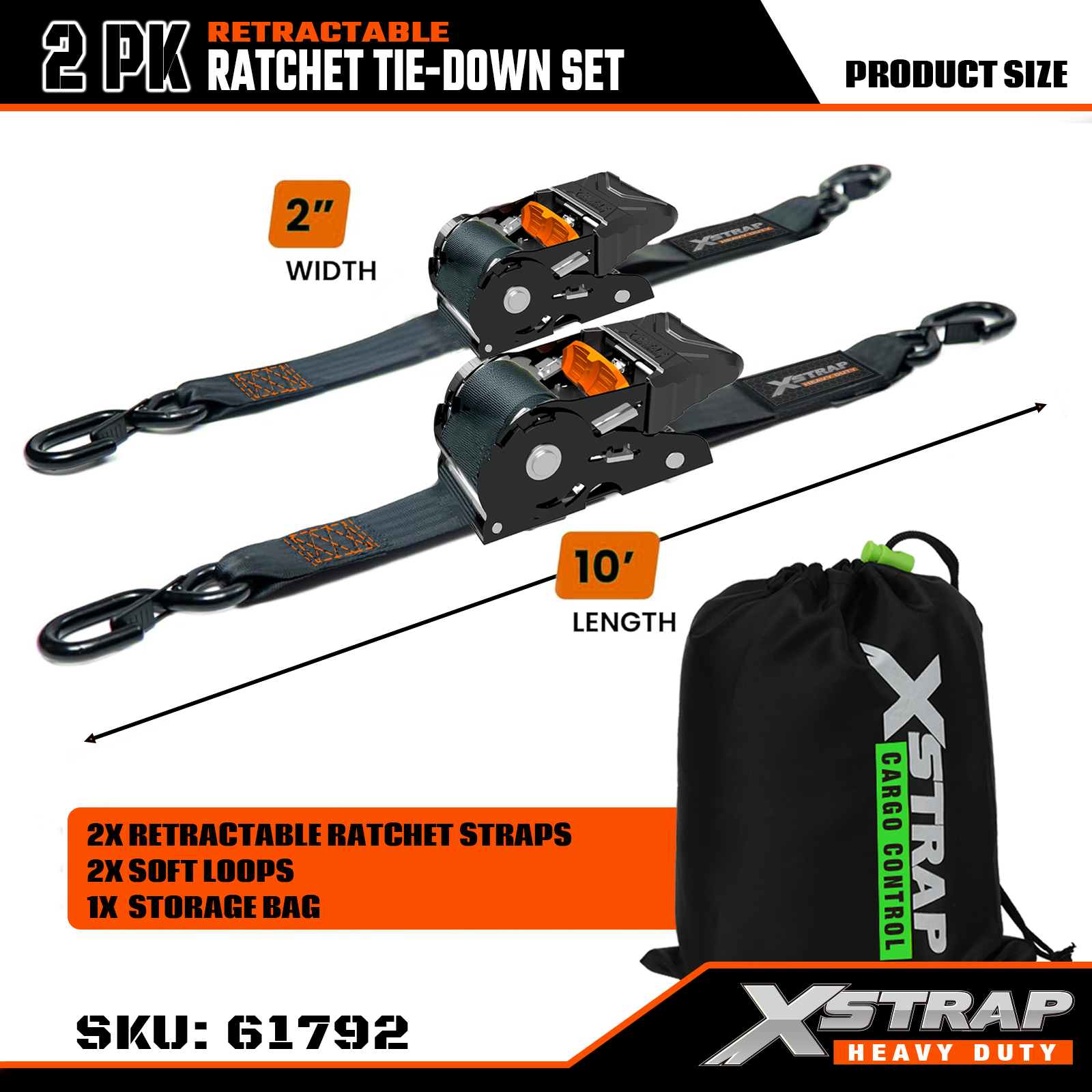 Xstrap 2PK zaťahovacia súprava na uchytenie račne s bezpečnostnými háčikmi S, 2” x 10’ polyesterový popruh s račňou, 1011 libier zaisťovacie popruhy na uchytenie nákladu s bezpečnostnými S háčikmi pre nákladné auto, nákladný príves, motocykel.